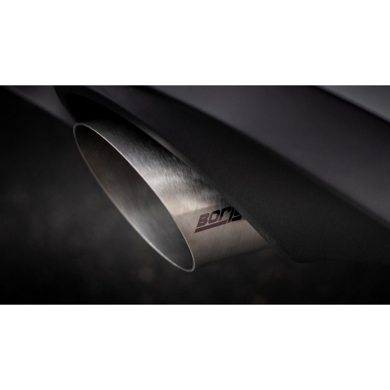 This is a 3" diameter system. This system features 4" brushed T-304 stainless steel tips with laser etched Borla(r) logo. Borla(r) Cat-Back(tm) and Axle-Back exhaust systems feature patented straight-through and multi-core technology designed to unleash hidden horsepower. Increased exhaust velocity adds power, driving excitement, fuel economy, and the distinctive Borla(r) Sound of Power respected by motoring enthusiasts everywhere. Each system is built from premium T-304 stainless steel, superior to T-400 series knockoffs (such as 409), to give you the absolute best in performance and durability. Ultra-smooth mandrel bends ensure maximum flow & power, and precision computer-controlled CNC manufacturing ensures an accurate fit. Best of all, Borla(r) stands behind every system with a Million-Mile Warranty. Just what you'd expect from the world's most experienced (and most winning) exhaust brand.