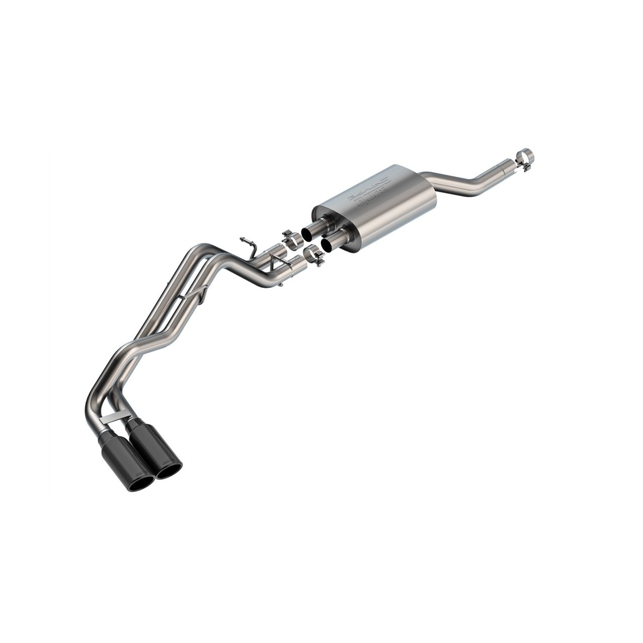 This 2.75" diameter into dual 2.25" Cat-Back™ system was designed specifically for the 2.3L Ranger and features the classic S-Type sound with no drone inside the vehicle. The system features dual tail pipes (Not just a single tail pipe with dual tips) that exit on the passenger side and a single 4" round black chrome on T-304 stainless steel tip on each tail pipe. Using BORLA Stainless Steel Polish p# 21461 is NOT recommended with these black chrome tips. We suggest cleaning the tips with hot water and a microfiber cloth. A system with bright chrome on T-304 stainless steel tips is also available. BORLA Cat-Back™ Axle-Back exhaust systems feature patented straight-through and multi-core technology designed to unleash hidden horsepower. Increased exhaust velocity adds power, driving excitement, fuel economy, and the distinctive BORLA Sound of Power respected by motoring enthusiasts everywhere. Each system is built from premium T-304 stainless steel, superior to T-400 series knockoffs (such as 409), to give you the absolute best in performance and durability. Ultra-smooth mandrel bends ensure maximum flow & power, and precision computer numerical control (CNC) manufacturing ensures an accurate fit. Give your Ranger the system it deserves, bolt on a BORLA. Best of all, BORLA stands behind every system with a Million-Mile Warranty. Just what you'd expect from the world's most experienced (and most winning) exhaust brand.