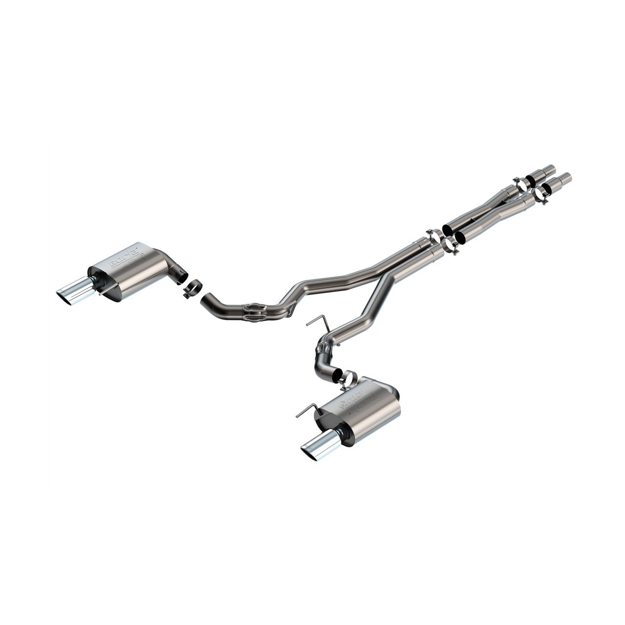 This 3" diameter True Dual Borla(r) Cat-Back(tm) system features a merge X-Pipe for increased performance and improved sound. This system is designed for use on cars WITHOUT the Active Exhaust feature. The muffler contains Polyphonic Harmonizer technology which utilizes patented units that contain pipes of different diameters and lengths to create multiple exhaust notes that harmonize to deliver a clean, rich, full-bodied sound. It features the aggressive ATAK(r) sound with no drone inside the vehicle and 4" bright chrome on T-304 stainless steel tips. Systems with black chrome on T-304 stainless steel tips, and carbon fiber tips are also available. Borla(r) Cat-Back(tm) and Axle-Back exhaust systems feature patented straight-through and multi-core technology designed to unleash hidden horsepower. Increased exhaust velocity adds power, driving excitement, fuel economy, and the distinctive Borla(r) Sound of Power respected by motoring enthusiasts everywhere. Each system is built from premium T-304 stainless steel, superior to T-400 series knockoffs (such as 409), to give you the absolute best in performance and durability. Ultra-smooth mandrel bends ensure maximum flow & power, and precision computer numerical control (CNC) manufacturing ensures an accurate fit. Best of all, Borla(r) stands behind every system with a Million-Mile Warranty. Just what you'd expect from the world's most experienced (and most winning) exhaust brand.