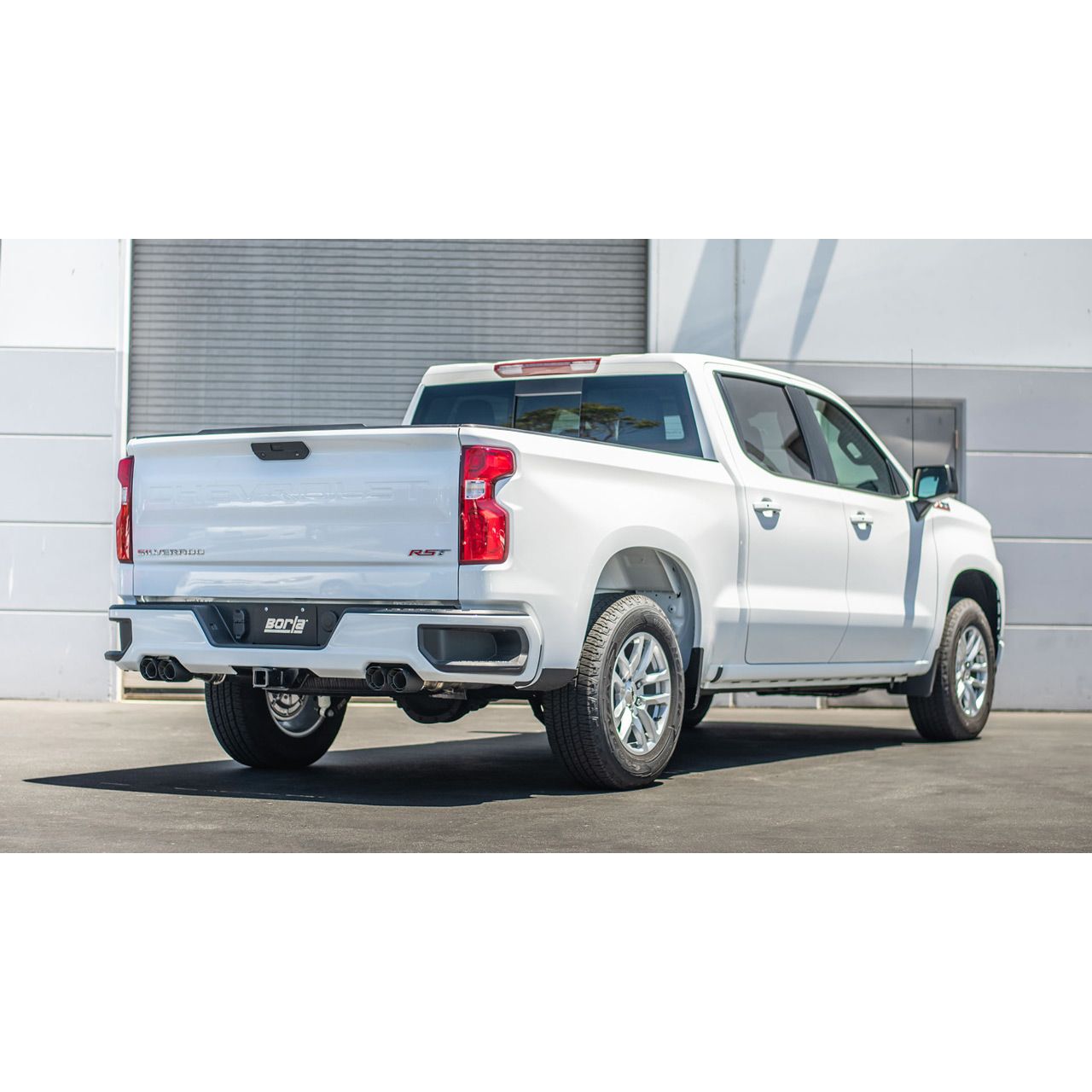Touring Cat-Back Exhaust System 2024-2025 Silverado/Sierra 1500 (EXC/ZR2&ATX4) 6.2L V8 AT 2&4WD Ext/Cab Std/Bed (6' 7")/Crew Cab Short Bed (5' 10") 147.4" WB/Factory Rear Exit/Add 60706 For Crew Cab Std/Bed (6' 7") 157"/Borla Has Valve Sim