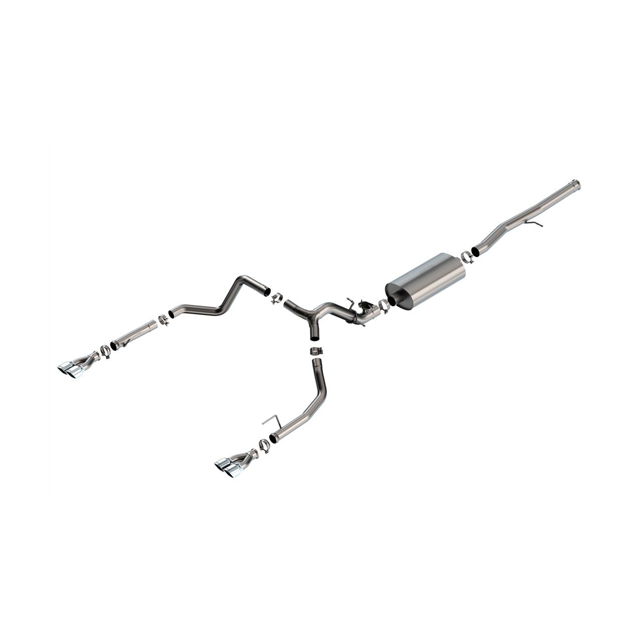 Touring Cat-Back Exhaust System 2024-2025 Silverado/Sierra 1500 (EXC/ZR2&ATX4) 6.2L V8 AT 2&4WD Ext/Cab Std/Bed (6' 7")/Crew Cab Short Bed (5' 10") 147.4" WB/Factory Rear Exit/Add 60706 For Crew Cab Std/Bed (6' 7") 157"/Borla Has Valve Sim