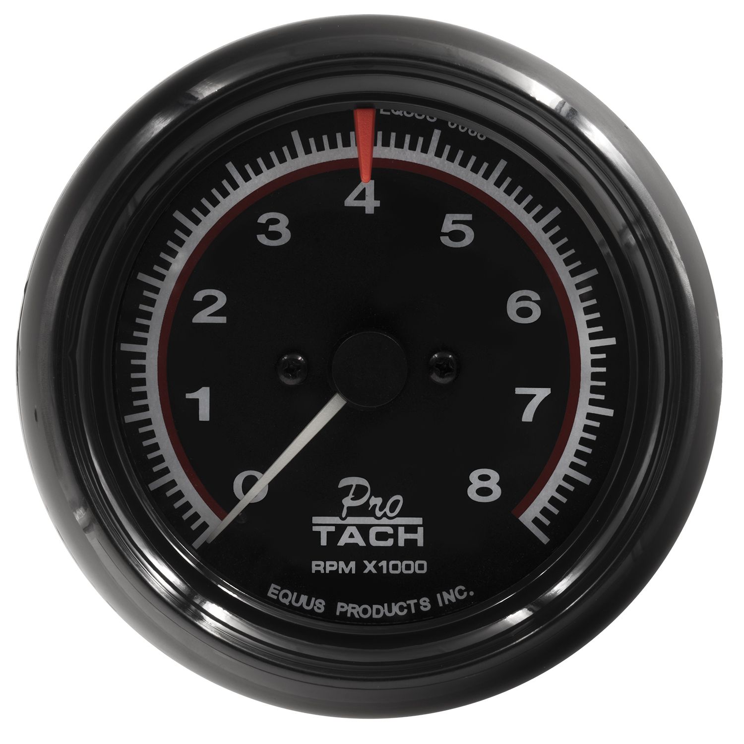 Equus 6000 Series, Gauge, Tachometer, 3-3/8" , 8000 RPM, Black Dial Black Case