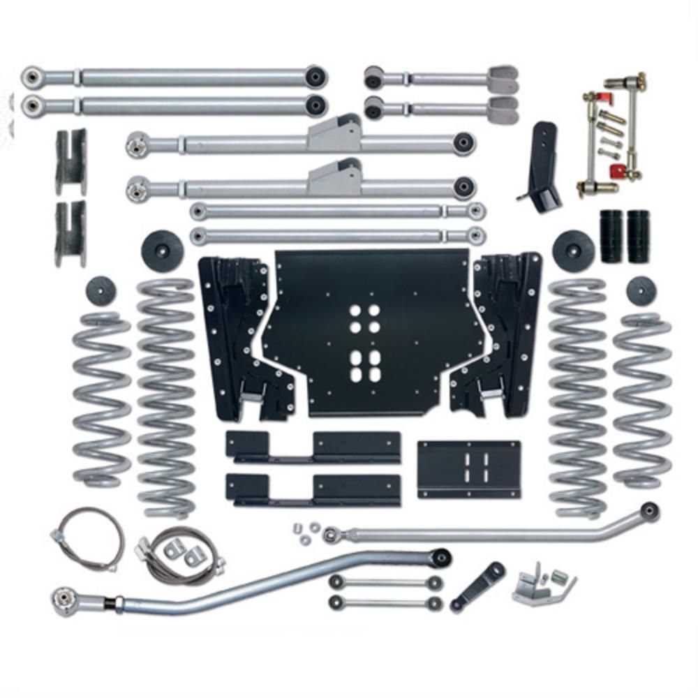 Rubicon Express Was The First To Comercially Offer A Long Arm Suspension System For The Jeep TJ. Our Extreme-Duty Long Arm System Set The Industry Standard By Which All Other Kits Have Been Measured. It Is Designed To Be A Complete Suspension Replacement, Which Utilizes Longer Control Arms To Improve Lifted Suspesnion Geometry. This System Will Offer You Superior Stability On And Off Road, Reduced Torque Roll, And Enhanced Trail Traction Over Standard Short Arm Lift Systems. The Rubicon Extreme-Duty Long Arm Suspension System Includes A Three-Piece Belly Pan For Easy Transfer Case And Transmission Access. Our TJ Extreme-Duty Long Arm Suspension System Is The Best Performing And Most Technologically Advanced System Of Its Kind; There Is No Better Long Arm Suspension System Available For Your TJ. The First And Still The Best.