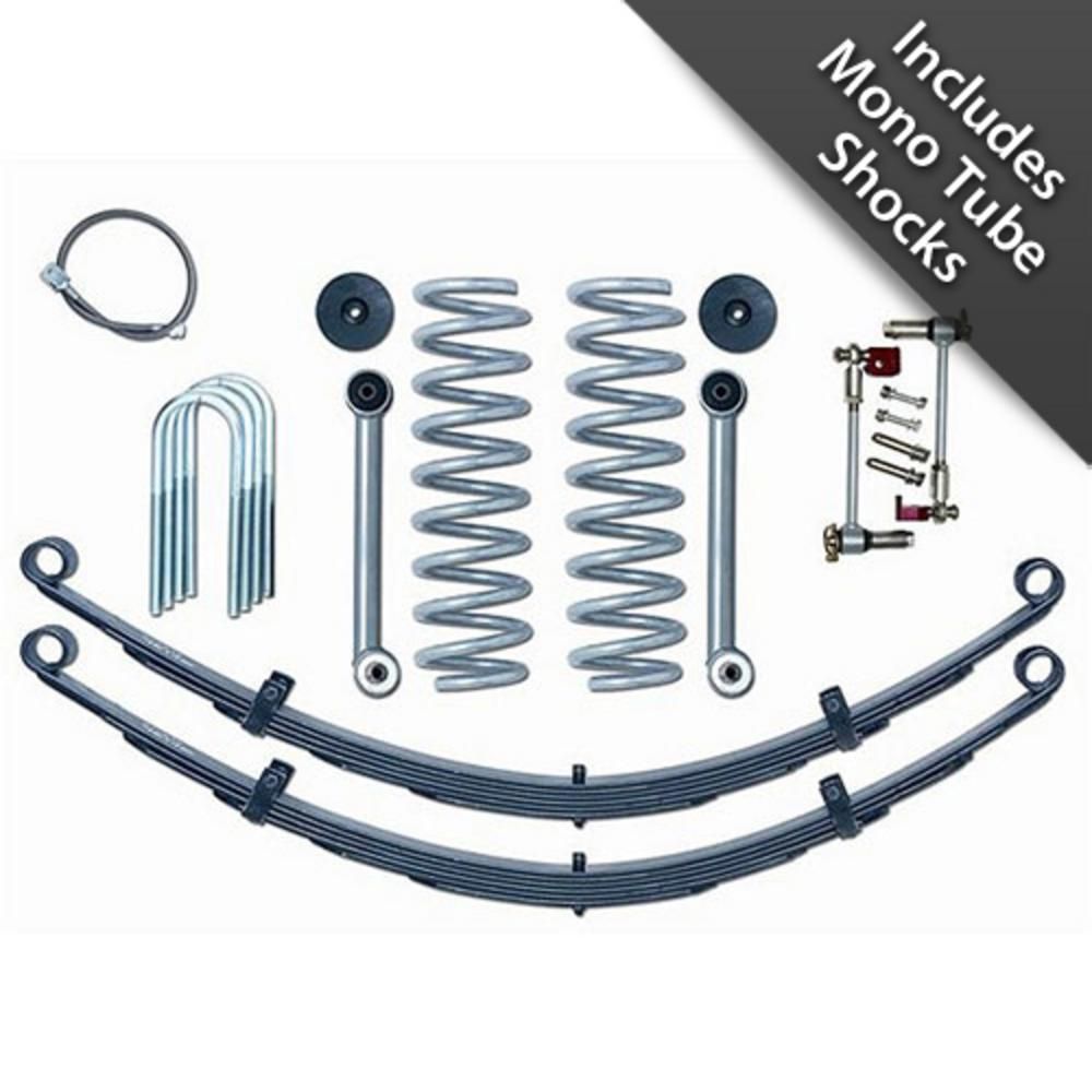 The Rubicon Express 3.5" Super-Flex Suspension System For The XJ Cherokee Owner Who Wants A Little Less Lift Than The 4.5" At A More Affordable Price. The Lower Control Arms Of Your XJ'S Suspension Are Upgraded w. Our Super-Flex Front Control Arms While The Stock Upper Control Arms Are Retained. The 3.5" Super-Flex System Will Improve The Trail Flexibility Of Your XJ While Retaining A Comfortable Street Ride.