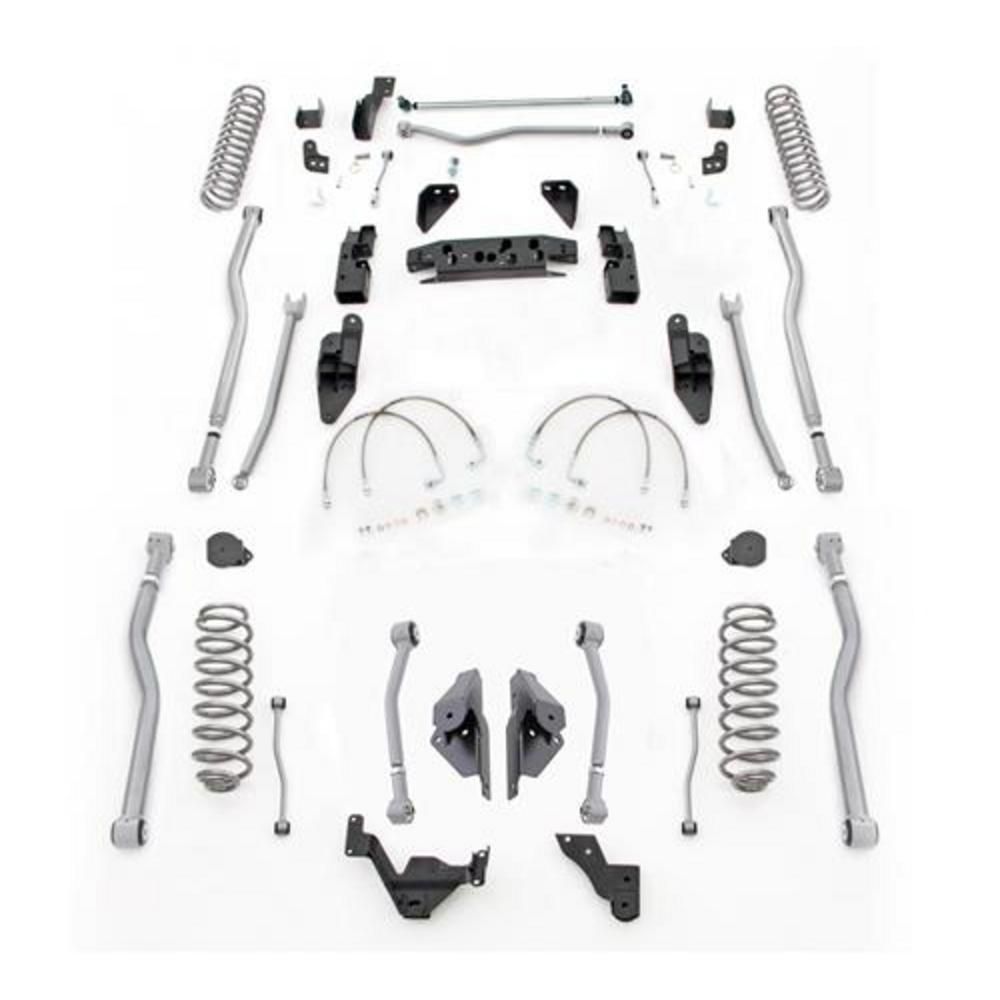 The Latest Addition To The Rubicon Express JK Suspension Offering Is Our Complete 4-Link Extreme-Duty Long Arm System. These High Performance Suspension Systems Deliver Both Performance And Control That Are Unmatched By Any Other Long Arm Kit On The Market. They Feature Adjustable Chromoly Upper And Lower Control Arms That Will Stand Up To Anything You Can Drive Over. With Pt-Meg Super-Ride Bushings And Super-Flex Joints They Are Sure To Provide Superior Handing While Not Limiting Articulation. The Kits Full Width Heavy-Duty Transmission Crossmember Allows For More Durability And Frame Rigidity Then The Competition. This Also Allows For Installation That Is Much Easier That Competitors Kits Eliminating The Need For Welding. An Optional Robust Belly Pan, And CNC Machine Steering Knuckle Provide Outstanding Upgrades. Systems Can Be Ordered In 3.5", 4.5" And 5.5" Lift Heights With Optional High Performance Monotube Shocks. Like All Rubicon Express Systems, They Are Made In The Usa And Backed By The Rubicon Express Advantage Lifetime Warranty.