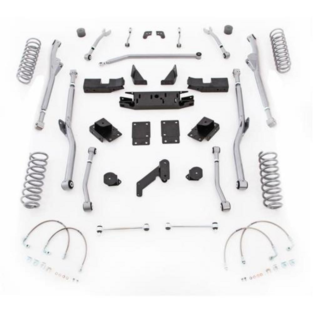 The Rubicon Express Extreme-Duty Long Arm System Was The First Radius Long Arm Suspension Available For The Jeep Wrangler JK. This System Has Been Engineered To Work With Your Jeeps Electronic Stability Controls And Rubicon Edition Electronic Sway Bar Without Compromising Safety. Featuring Our World-Class Chromoly Radius Long Arms, The Geometry Has Been Meticulously Designed To Keep Pinion And Driveshaft Angles In Phase, While Elimination Suspension Jacking And Unwanted Suspension Squat. Our Extreme-Duty Long Arm System Coupled With Properly Valved Rubicon Express Shocks Allows The JK Wrangler To Transmit Throttle Input To The Wheels Over Varied Terrain, Providing Sure-Footed Traction And Positive Suspension Feedback. The Result Is Superior On Road Handling And Unrivaled Off Road Performance, Without The Need To Disable Factory Safety Features.