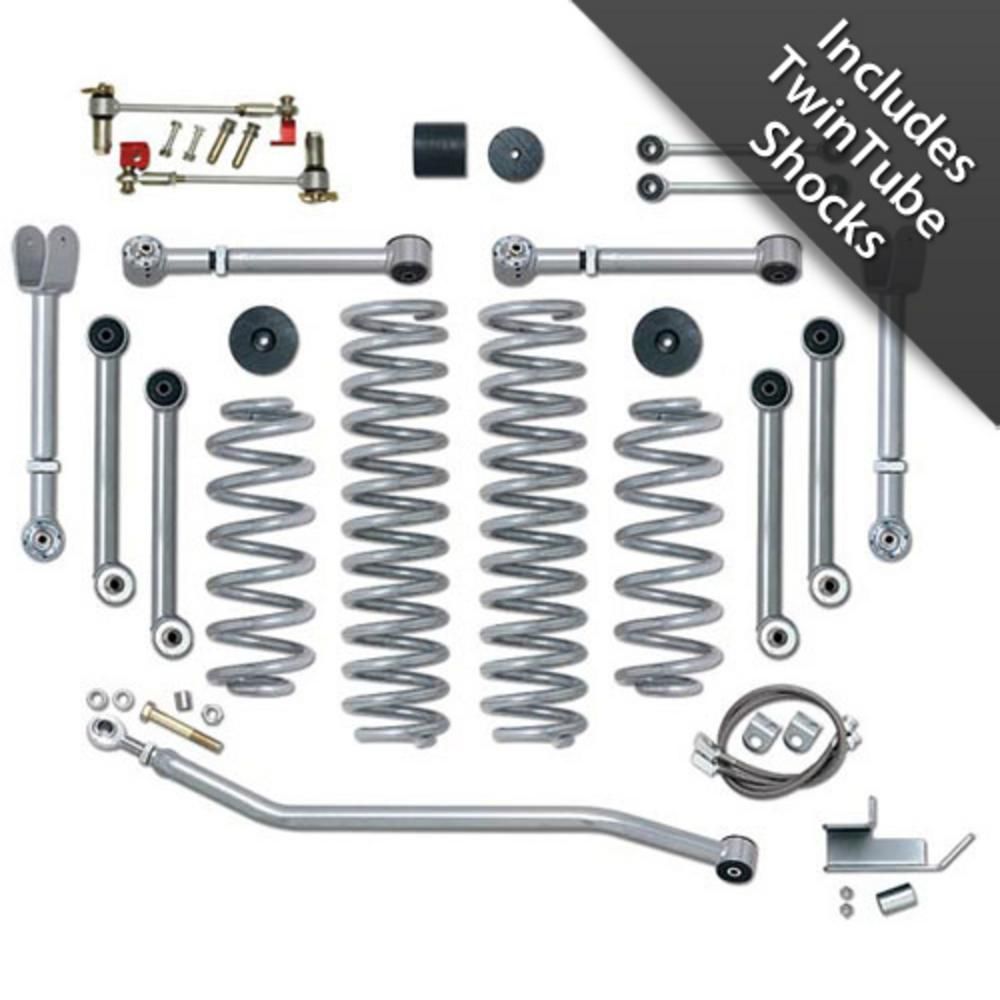 The Super-Flex 3.5" System Is The Ultimate Suspension System For TJs And LJs Currently Running The Factory Short Arm Suspension Geometry. The Super-Flex 3.5" System Is A Complete Suspension System, Featuring 8 New Control Arms, Adjustable Upper Front And Rear With Our Serviceable Super-Flex Spherical Ball Joints, Adjustable Front Track Bar, Replacement 3.0" Lift Springs In The Front And 3.5" Lift Springs In The Rear, Extended Bump Stops, Longer Front Stainless Steel Brake Lines And Gen II Sway Bar Disconnects. The Super-Flex Suspension System Combines Superior Flexibility And Handling. Installing One Will Give Your Jeep The On And Off-Road Performance You'Ve Been Waiting For.