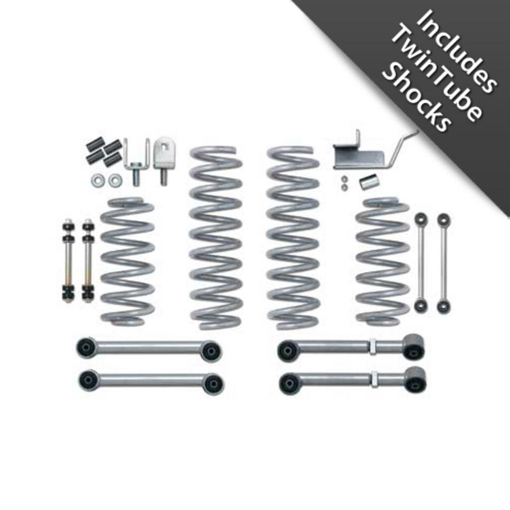 The Rubicon Express Super-Ride Suspension System Provides 3.5" Of Lift For Your Grand Cherokee At An Economical Price. This Suspension System Is Ideal For A Vehicle Owner With A Smalled Budget Who Is Just Getting Started. The 3.5" Super-Ride Is The Standard Short Arm Suspension System Featuring Our Exclusive Super-Ride Lower Control Arms, 3.5" Lift Coil Springs, Rear Trackbar Relocation Bracket And Extended Sway Bar Links. The Stock Upper Control Arms, Track Bars, And Other Components Are Retained. The Super-Ride Suspension System Will Perform Smoothly On And Off The Trail And Is Easily Upgradeable To The Super-Flex System In The Future.