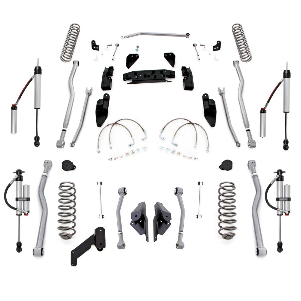 The Latest Addition To The Rubicon Express JK Suspension Offering Is Our Complete 4-Link Extreme-Duty Long Arm System. These High Performance Suspension Systems Deliver Both Performance And Control That Are Unmatched By Any Other Long Arm Kit On The Market. They Feature Adjustable Chromoly Upper And Lower Control Arms That Will Stand Up To Anything You Can Drive Over. With Pt-Meg Super-Ride Bushings And Super-Flex Joints They Are Sure To Provide Superior Handing While Not Limiting Articulation. The Kits Full Width Heavy-Duty Transmission Crossmember Allows For More Durability And Frame Rigidity Then The Competition. This Also Allows For Installation That Is Much Easier That Competitors Kits Eliminating The Need For Welding. An Optional Robust Belly Pan, And CNC Machine Steering Knuckle Provide Outstanding Upgrades. Systems Can Be Ordered In 3.5", 4.5" And 5.5" Lift Heights With Optional High Performance Monotube Reservoir Shocks. Like All Rubicon Express Systems, They Are Made In The Usa And Backed By The Rubicon Express Advantage Lifetime Warranty.