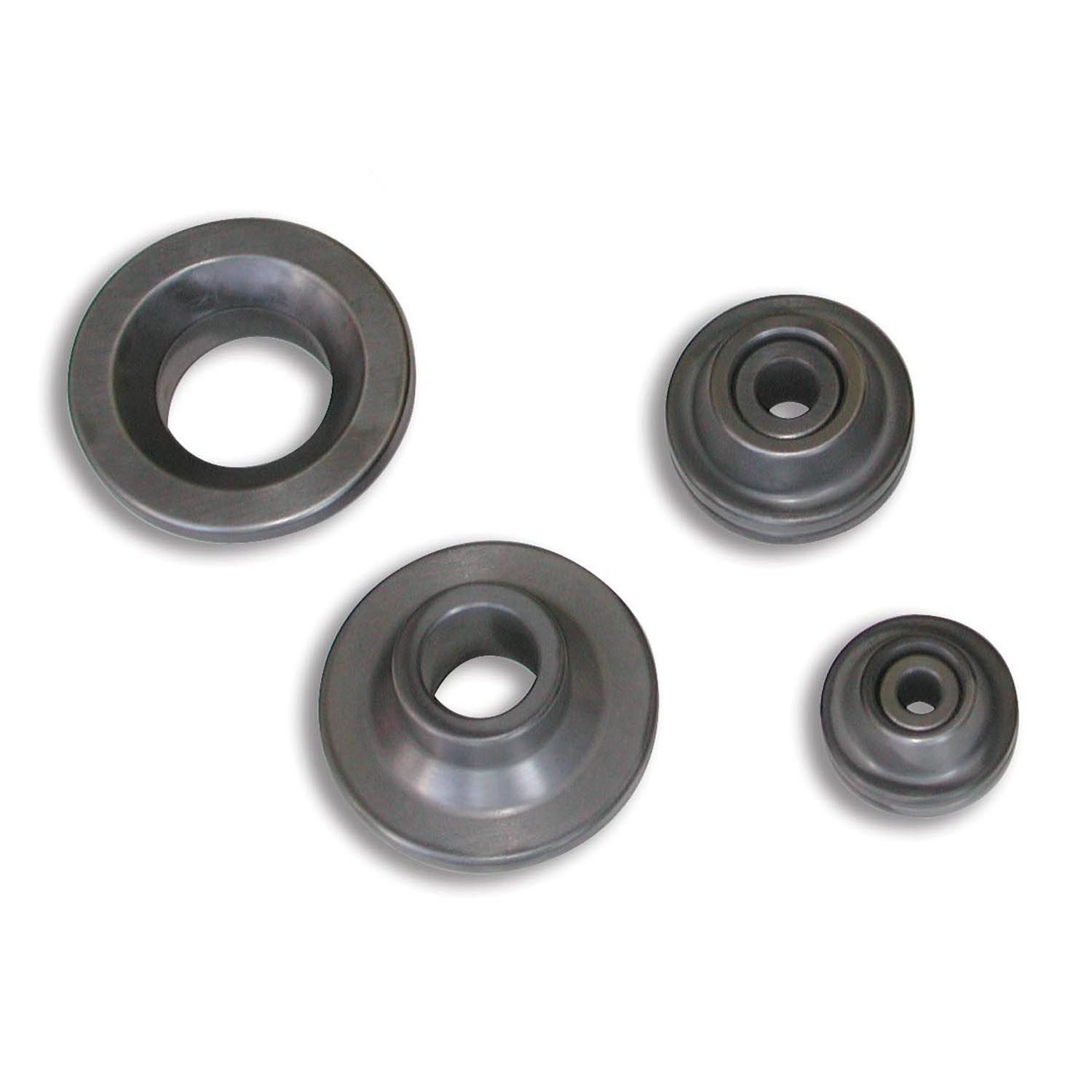 This 3 piece set includes: 3.0", 3.5", 4.0" – Often called "dimple dies", flared hole dies are used in sheet-metal fabrications to provide rigidity and strength to flat, unsupported panels. Due to the resulting high strength-to-weight ratio applications promoted by the use of this technique, flared holes are found in many aircraft and race vehicles designs. Beginning with comprehensive finite element analysis supported by extensive prototype testing, our Flared Hole Dies are engineered to provide the optimum combination of performance attributes: Designed to eliminate edge tearing even when used on high strength 4130 chromoly sheet (normalized condition), with laser cut holes (hardened edges) Optimized form (flare angle, bend radius and length of run) provides maximum stiffness and strength Manufactured from premium hardened high carbon steel for maximum tool life Unique shape for ease of handling Up to max sheet thickness of .090 for chromoly and .125 for mild steel.