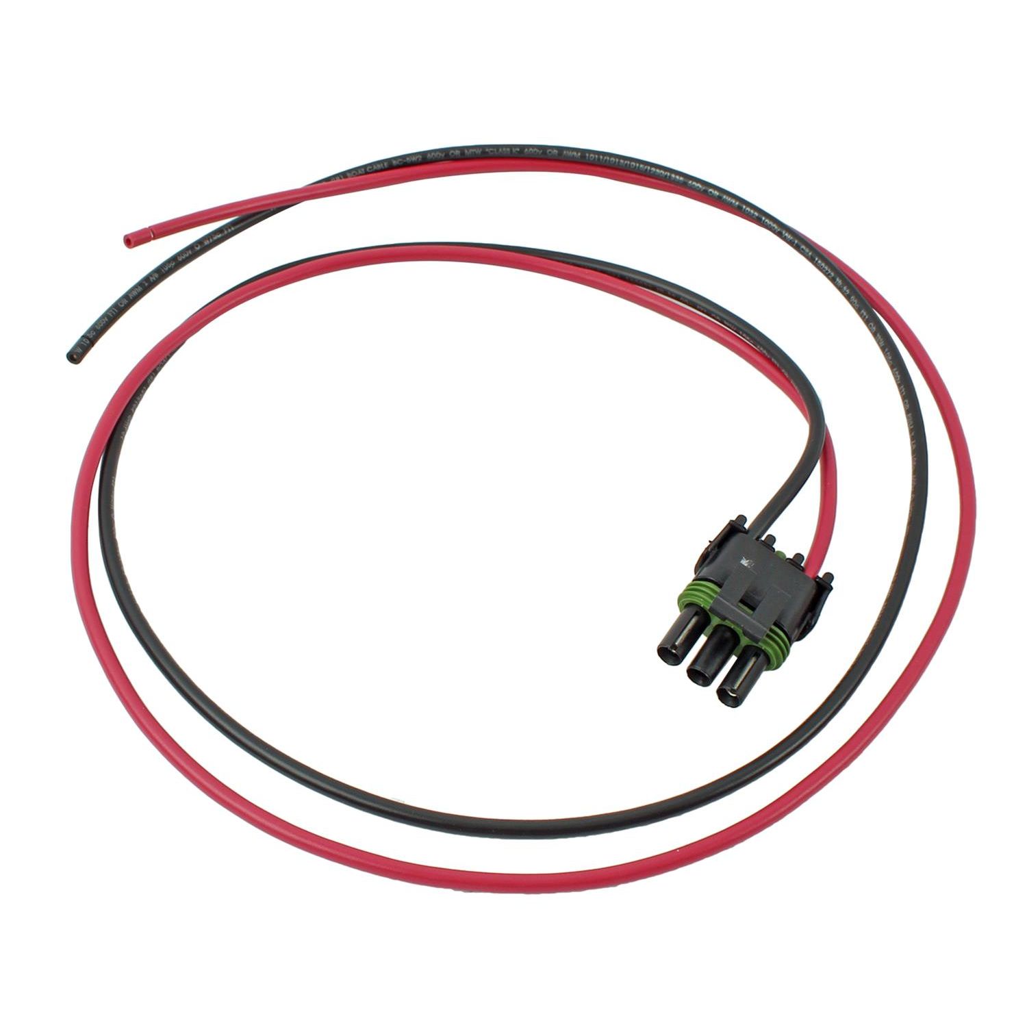 This harness allows for the installer to connect their car harness to their E6 Circle Track ignition system with a Weatherpack connection. This harness plugs into the E6 3 pin battery +/- plug to provide ground and 12+ to starter solenoid.