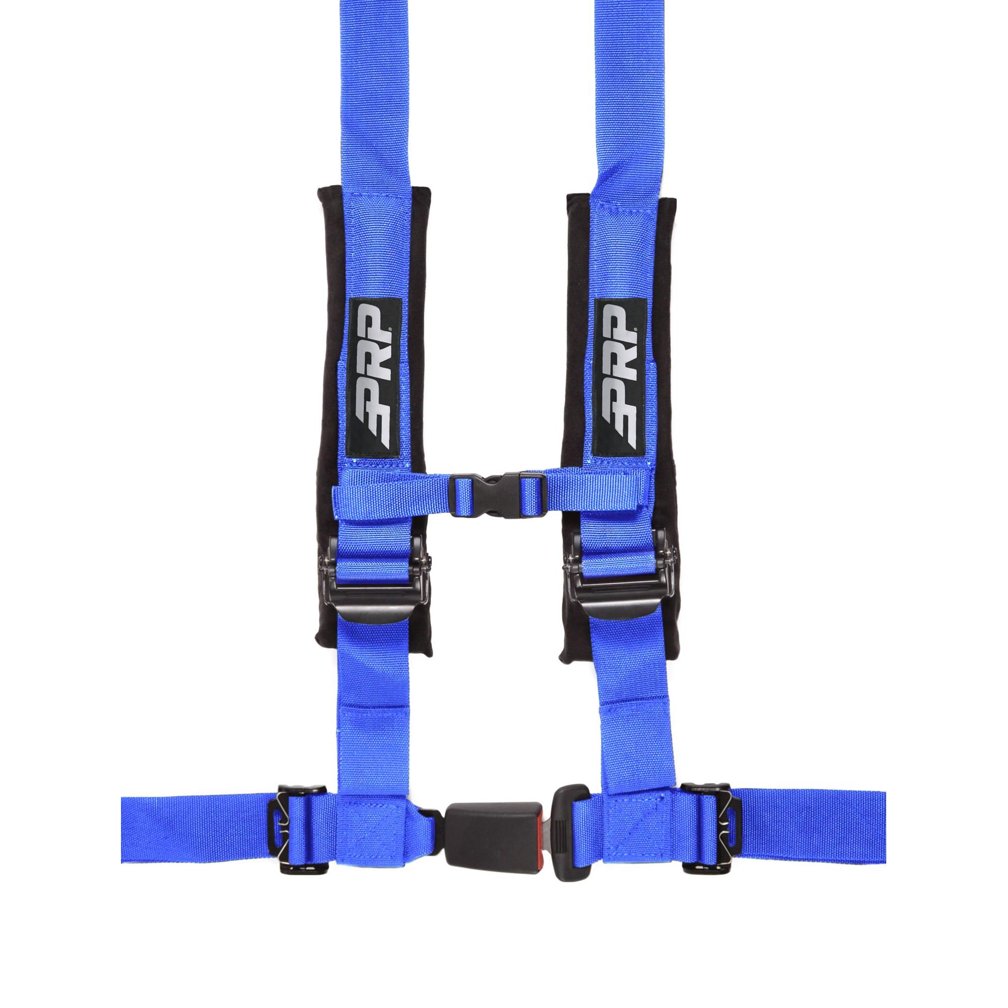 PRPs 4.2 Harness provides great comfort and safety for off-road vehicles. This 4 point harness with 2inch belts has sewn in shoulder pads that stop chaffing on the neck and add extra comfort, especially on long rides. An EZ-Click Buckle keeps you secure, while allowing you to quickly get in and out of the vehicle. Just press the button to click in or out. Perfect for casual trail riding in a UTV or Jeeping where you are constantly getting in and out of the vehicle. PRP Harnesses also keep you better contained than OEM, allowing you to stay secure your seat while going though rough terrain. So you can maintain better control and be locked in while bouncing around in the whoops. Allowing you to drive longer and farther with less fatigue. The 4.2 features Includes all black hardware, and EZ adjusters on the shoulders. The EZ adjusters allow you to adjust your shoulder straps quickly and easily, even if they are covered in dirt or mud. Just pull up on the lever and the shoulder straps come loose. The Lap and Shoulder belts are sewn together, making it easier to bring both sides of the harness together to buckle up. The 4.2 comes standard with bolt-in tabs that can be mounted to your vehicle, or wrapped around a harness bar. Why this harness? The 4.2 has been one of our most popular harnesses for how quick and easy it is to use. The 2" belts are great for smaller riders, because the belts fit better onto their shoulders. The EZ-Click buckle makes it easy for anyone to use. Available in several different colors. Sold Individually WARNING Proper installation and consistent use of the 4 point harness restraint system is critical to your safety in event of an accident. To reduce the risk of serious injury or death: Follow vehicle manufacturers, and PRP Seats instructions and safety messages during installation and use of this product. Use all belts provided. Secure lap belt first; low and snug across hips. Sternum strap tight at chest line (min. 4” below the nec