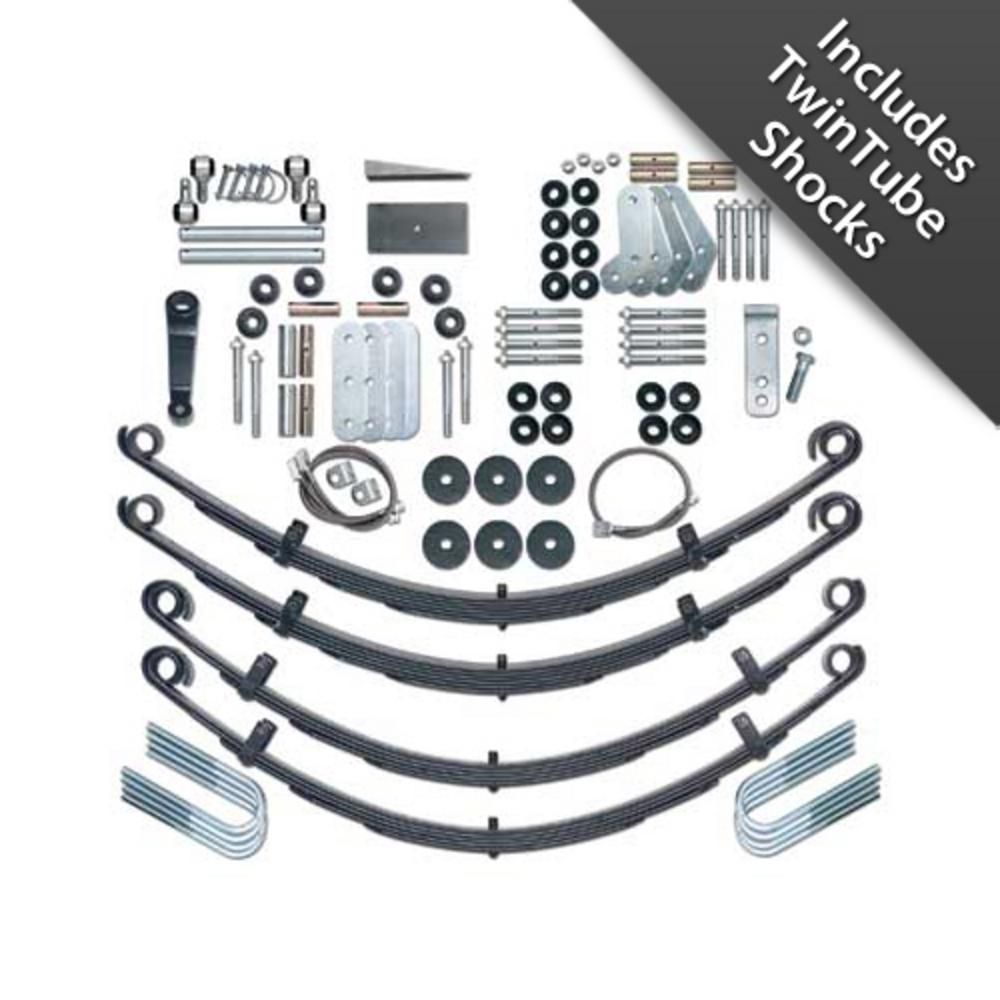 The 4.5" Rubicon Express Exteme-Duty Suspension Is Your System Of Choice If You Desire A SuBStantial Increase In Ground And Tire Clearance, As Well As Greatly Increasaed Suspension Flexibility. This System Features Re Extreme-Duty Leaf Springs, Which Are Unmatched For Durability, Flexibility And Ride Quality. Greaseable Shackles And Main Eye Bushings Are Included On The Extreme-Duty System. This 4.5in. System Will Maintain The Classic Jeep YJ Ride Characteristics While Allowing You To Run 33in. Tires, (Adding A 1in. Body Lift Will Allow The Use Of 35in. Tires). Installing A Sye And CV Driveshaft Will Be Necessary.