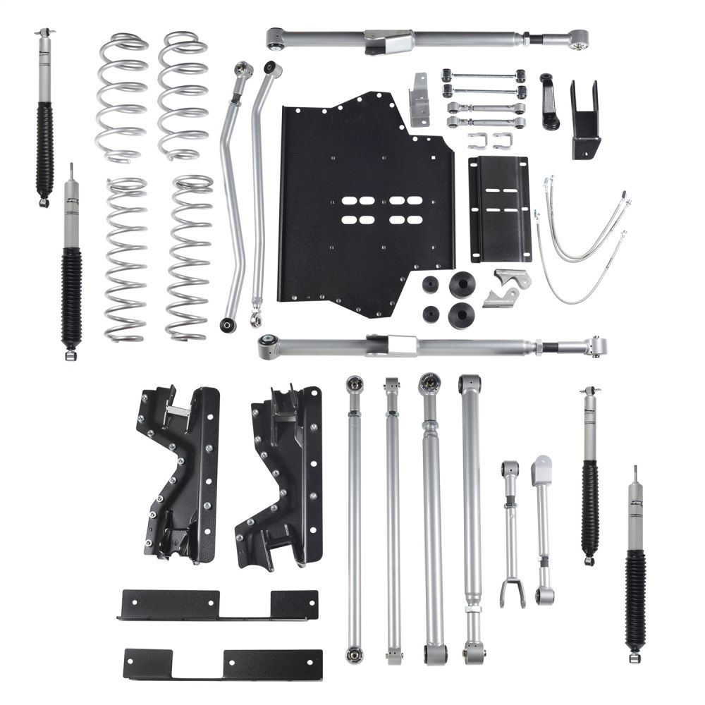 Rubicon Express Was The First To Comercially Offer A Long Arm Suspension System For The Jeep TJ. Our Extreme-Duty Long Arm System Set The Industry Standard By Which All Other Kits Have Been Measured. It Is Designed To Be A Complete Suspension Replacement, Which Utilizes Longer Control Arms To Improve Lifted Suspesnion Geometry. This System Will Offer You Superior Stability On And Off Road, Reduced Torque Roll, And Enhanced Trail Traction Over Standard Short Arm Lift Systems. The Rubicon Extreme-Duty Long Arm Suspension System Includes A Three-Piece Belly Pan For Easy Transfer Case And Transmission Access. Our TJ Extreme-Duty Long Arm Suspension System Is The Best Performing And Most Technologically Advanced System Of Its Kind; There Is No Better Long Arm Suspension System Available For Your TJ. The First And Still The Best.