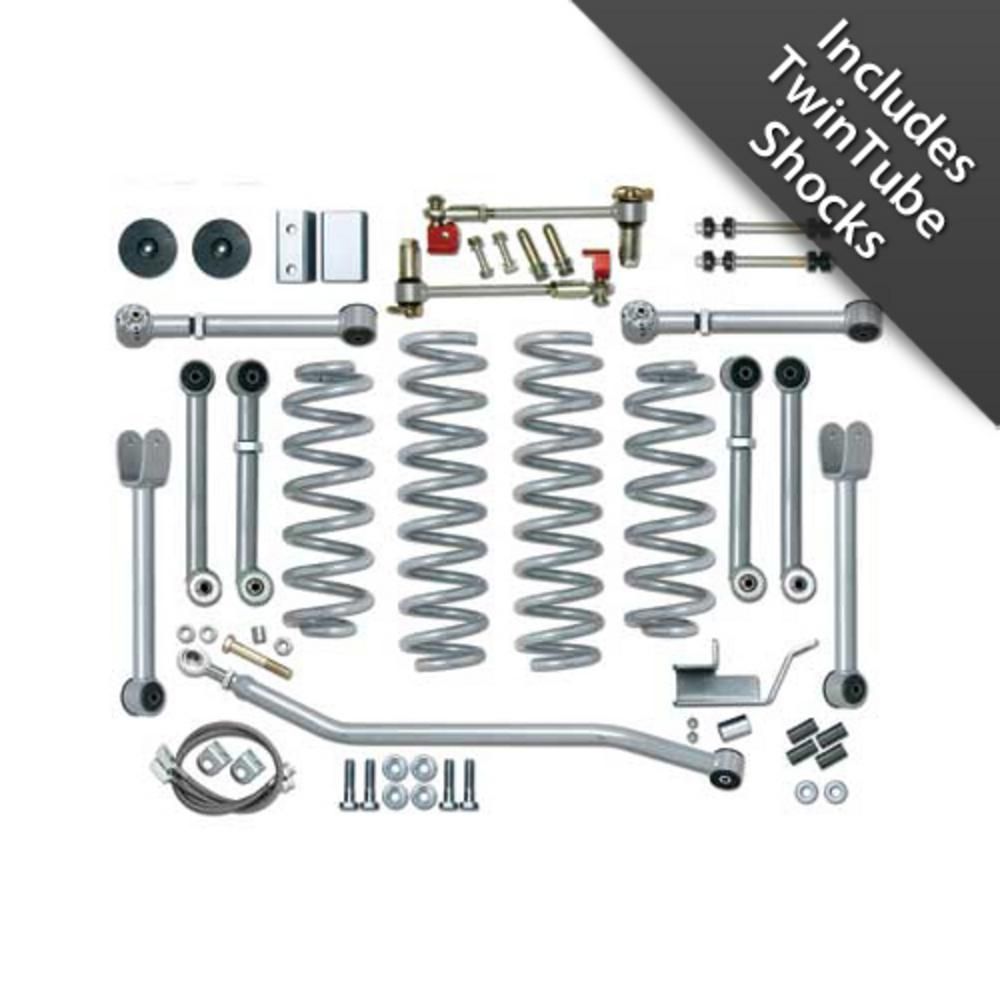 The Rubicon Express Super-Flex System Is The Best Suspension For Grand Cherokee'S Running Factory Short Arm Suspension Geometry. Upgrading Your Jeep With A Super-Flex Suspension System Will Turn Your Jeep Into A Remarkable Performing 4X4 Machine With A Smoother And More Flexible Ride On And Off The Trail. The Rubicon Express Super-Flex Lift Replaces Your Stock Suspension With Our High-Qualiyu, Trail-Ready Componenets. It Features An Adjustable Front Track Bar, Lower And Upper Adjustable Rear Control Arms With Our Super-Flex Spherical Ball Joints, Replacement Lift Springs, And Gen II Sway Bar Disconnects. This Is The Best ZJ Lift Available That Retains The Factory Short Arm Suspension Design And Utilizes The Factory Suspension Mounting Points.