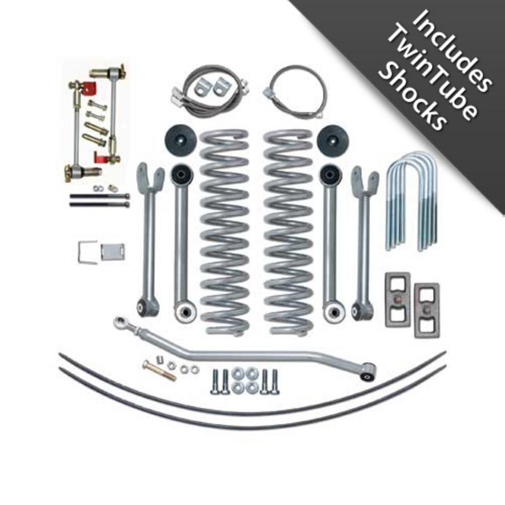 The Rubicon Express 4.5" Super-Flex Suspension System For The XJ Is Designed As A Complete Suspension System Replacement. The Stock Components Of Your XJ'S Suspension Are Upgraded With Super-Flex Front Control Arms (Allowing For Proper Caster AdjusTMents), Front Coil And Rear Leaf Spring And All The Other Components Required To Outfit Your Cherokee With Superb 4.5" Suspension Lift System.