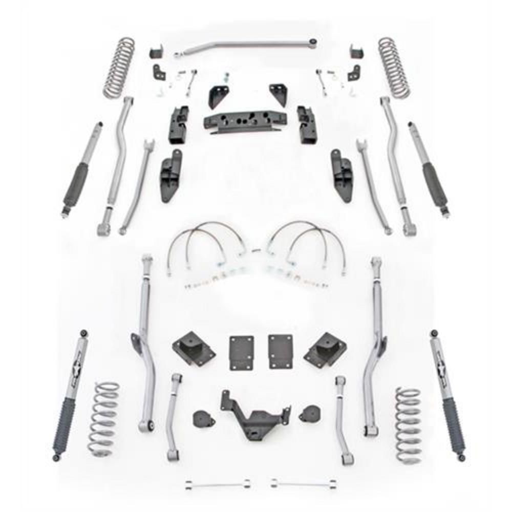 The Latest Addition To The Rubicon Express JK Suspension Offering Is Our Complete 4-Link Front/Rear Radius Extreme-Duty Long Arm System. These High Performance Suspension Systems Deliver Both Performance And Control That Are Unmatched By Any Other Long Arm Kit On The Market. They Feature Adjustable Chromoly Upper And Lower Control Arms That Will Stand Up To Anything You Can Drive Over. With Pt-Meg Super-Ride Bushings And Super-Flex Joints They Are Sure To Provide Superior Handing While Not Limiting Articulation. The Kits Full Width Heavy-Duty Transmission Crossmember Allows For More Durability And Frame Rigidity Then The Competition. This Also Allows For Installation That Is Much Easier That Competitor'S Kits Eliminating The Need For Welding. An Optional Robust Belly Pan, And CNC Machine Steering Knuckle Provide Outstanding Upgrades. Systems Can Be Ordered In 3.5", 4.5" And 5.5" Lift Heights With Optional High Performance Monotube Shocks. Like All Rubicon Express Systems, They Are Made In The Usa And Backed By The Rubicon Express Advantage Lifetime Warranty.