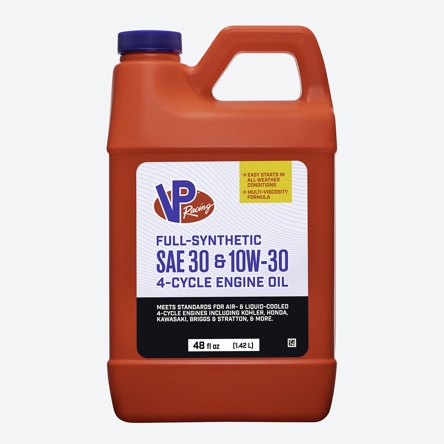 VP's full-synthetic 4-cycle engine oil provides unmatched thermal resistance, protection, and lubrication for all 4-cycle outdoor power equipment engines. It significantly reduces oil consumption compared to 10W30 mineral oils. This is a true flagship oil! Most importantly, our formula makes it the highest-quality 4-cycle engine oil for air-cooled engines and liquid-cooled engines, not to mention diesel engines.Our 4-cycle engine oil exceeds standard 10W-30 and SAE 30 engine oil performance. Moreover, its 100% more shear stable when compared to 10W-30 (longer life), and it provides a 30% wider VI range versus SAE 30 engine oil (easier starts). Furthermore, it meets or exceeds OEM specifications for Briggs and Stratton, Kohler, Kawasaki, Honda, and more. Youre assured longer oil life and easier starting in all weather environments.