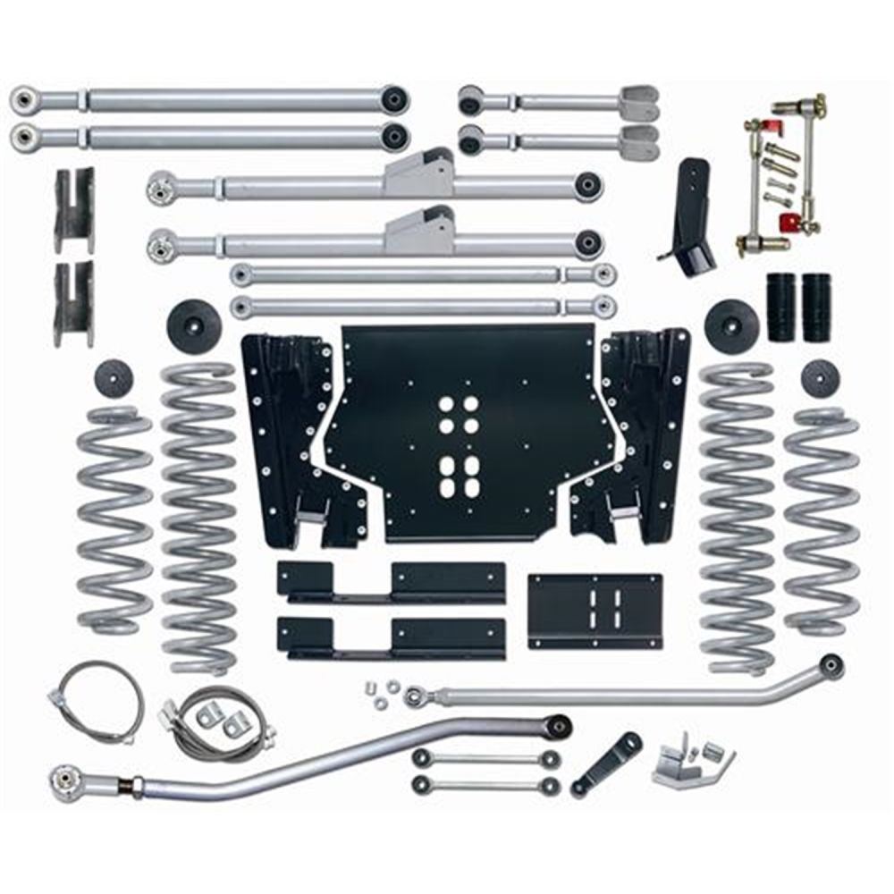 Rubicon Express Was The First To Comercially Offer A Long Arm Suspension System For The Jeep TJ. Our Extreme-Duty Long Arm System Set The Industry Standard By Which All Other Kits Have Been Measured. It Is Designed To Be A Complete Suspension Replacement, Which Utilizes Longer Control Arms To Improve Lifted Suspesnion Geometry. This System Will Offer You Superior Stability On And Off Road, Reduced Torque Roll, And Enhanced Trail Traction Over Standard Short Arm Lift Systems. The Rubicon Extreme-Duty Long Arm Suspension System Includes A Three-Piece Belly Pan For Easy Transfer Case And Transmission Access. Our TJ Extreme-Duty Long Arm Suspension System Is The Best Performing And Most Technologically Advanced System Of Its Kind; There Is No Better Long Arm Suspension System Available For Your TJ. The First And Still The Best.