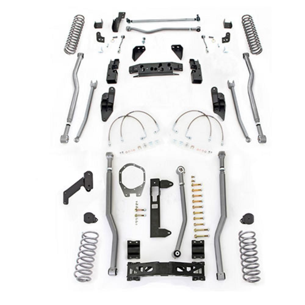 The Latest Addition To The Rubicon Express JK Suspension Offering Is Our Complete 4-Link Front/Rear 3-Link Extreme-Duty Long Arm System. These High Performance Suspension Systems Deliver Both Performance And Control That Are Unmatched By Any Other Long Arm Kit On The Market. They Feature Adjustable Chromoly Upper And Lower Control Arms That Will Stand Up To Anything You Can Drive Over. With Pt-Meg Super-Ride Bushings And Super-Flex Joints They Are Sure To Provide Superior Handing While Not Limiting Articulation. The Kits Full Width Heavy-Duty Transmission Crossmember Allows For More Durability And Frame Rigidity Then The Competition. This Also Allows For Installation That Is Much Easier That Competitors Kits Eliminating The Need For Welding. An Optional Robust Belly Pan, And CNC Machine Steering Knuckle Provide Outstanding Upgrades. Systems Can Be Ordered In 3.5", 4.5" And 5.5" Lift Heights With Optional High Performance Monotube Shocks. Like All Rubicon Express Systems, They Are Made In The Usa And Backed By The Rubicon Express Advantage Lifetime Warranty.