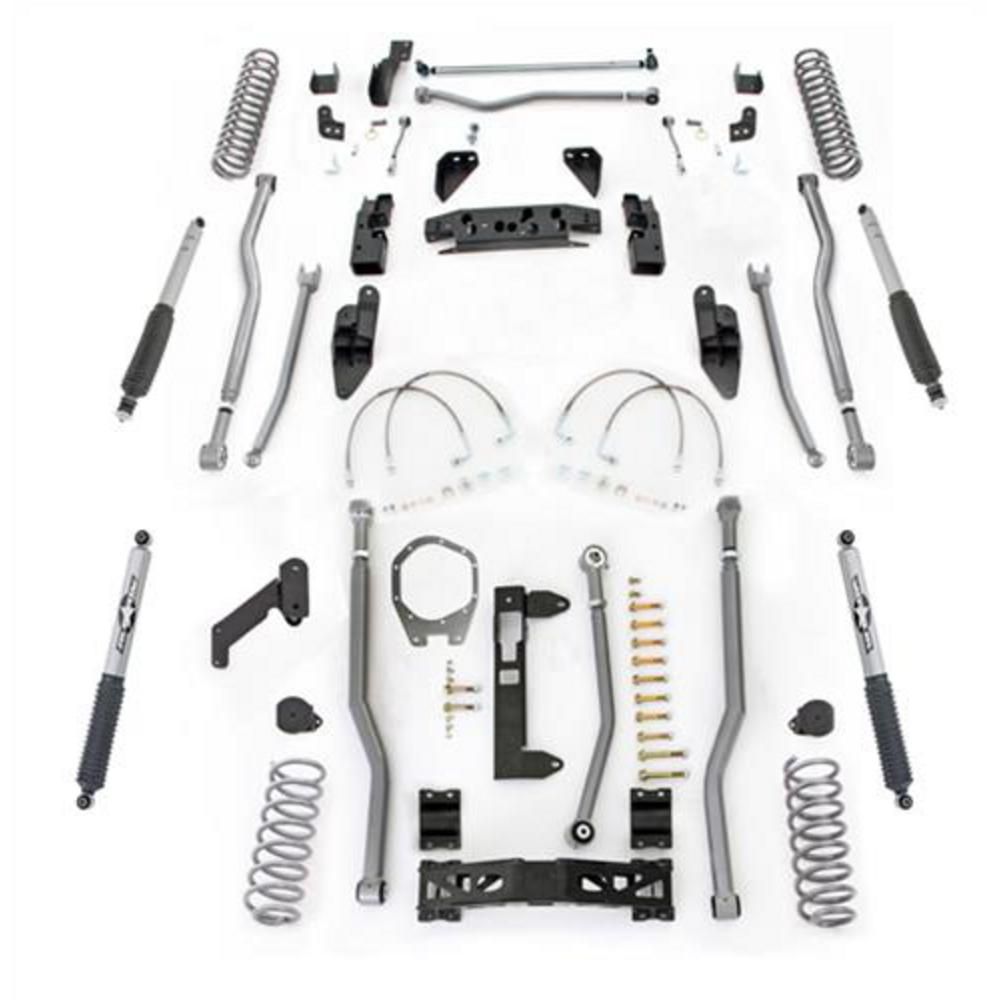 The Latest Addition To The Rubicon Express JK Suspension Offering Is Our Complete 4-Link Front/Rear 3-Link Extreme-Duty Long Arm System. These High Performance Suspension Systems Deliver Both Performance And Control That Are Unmatched By Any Other Long Arm Kit On The Market. They Feature Adjustable Chromoly Upper And Lower Control Arms That Will Stand Up To Anything You Can Drive Over. With Pt-Meg Super-Ride Bushings And Super-Flex Joints They Are Sure To Provide Superior Handing While Not Limiting Articulation. The Kits Full Width Heavy-Duty Transmission Crossmember Allows For More Durability And Frame Rigidity Then The Competition. This Also Allows For Installation That Is Much Easier That Competitors Kits Eliminating The Need For Welding. An Optional Robust Belly Pan, And CNC Machine Steering Knuckle Provide Outstanding Upgrades. Systems Can Be Ordered In 3.5", 4.5" And 5.5" Lift Heights With Optional High Performance Monotube Shocks. Like All Rubicon Express Systems, They Are Made In The Usa And Backed By The Rubicon Express Advantage Lifetime Warranty.