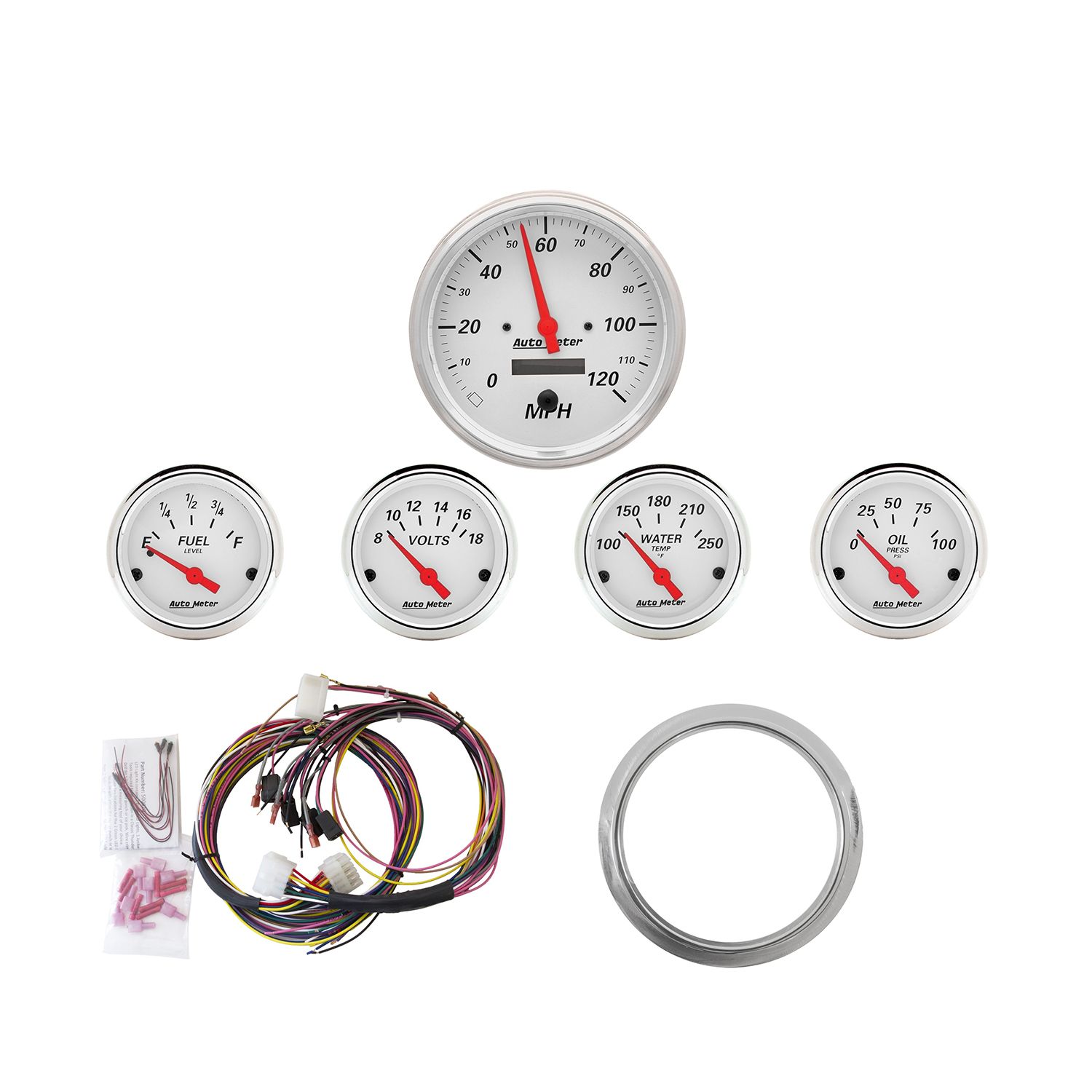Upgrade your classic 59 or 60 Chevrolet with an AutoMeter direct-fit dash kit. This easy-to-install package includes a CNC machined billet aluminum speedometer adapter and five iconic Arctic White series gauges featuring polar white dials,retro artwork,high contrast fluorescent red pointers,domed lenses and bright chrome bezels. Warm white perimeter dial lighting ensures a traditional appearance while our easy,no fab installation allows you to preserve the original interior of your classic ride.