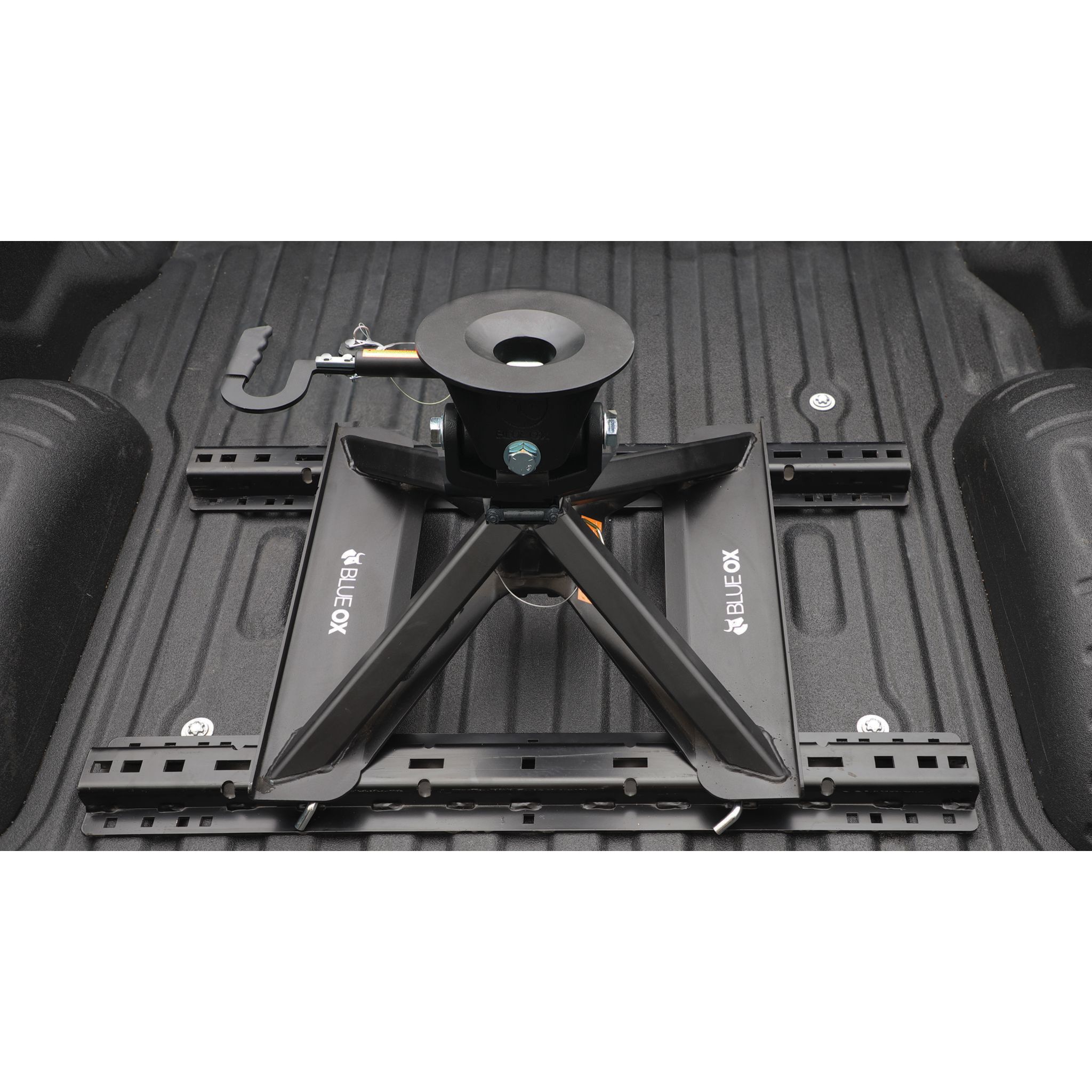 Blue Ox 5th Wheel Hitch that mounts to Industry Standard Rails. Has a 24,000 lb. Gross Towing Weight Rated and 6,000 LB. Tongue Weight Rated.