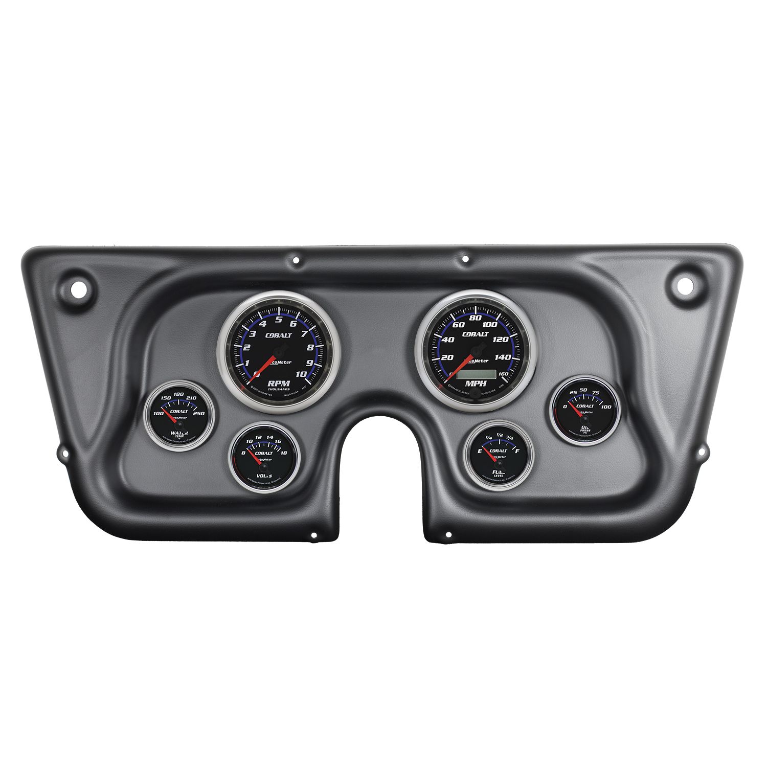 Includes 3-3/8" Cobalt electric speedometer & tachometer and 2-1/16" electric fuel level (0/90 ohm), water temperature, oil pressure, and voltmeter