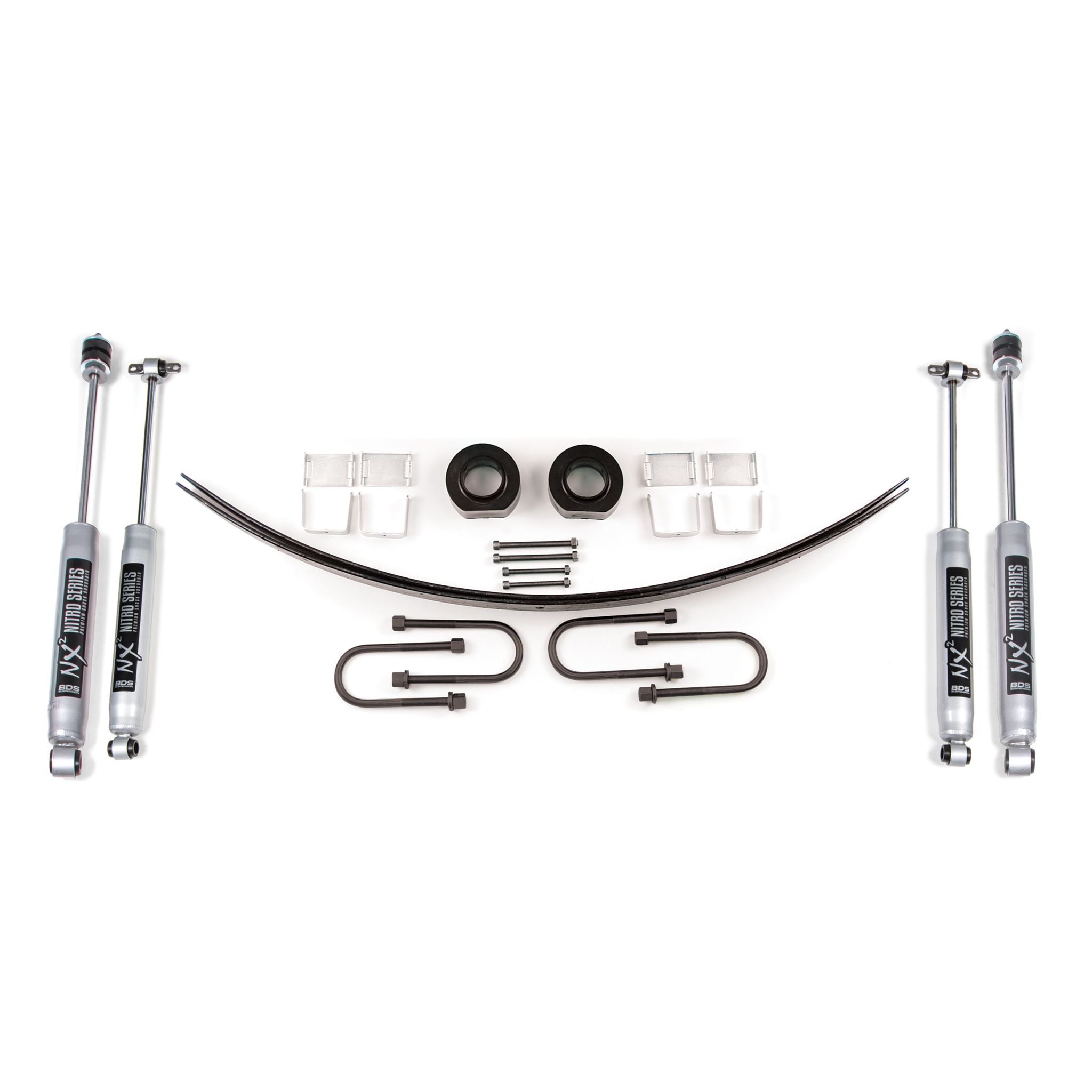 <p>The lift kit includes two front 1-3/4" urethane coil spring spacers, long rear thin add-a-leaf springs, and NX2 Nitro or FOX Performance series shocks. Give your Cherokee XJ the extra height with this 1-3/4 inch lift kit from BDS Suspension.</p>