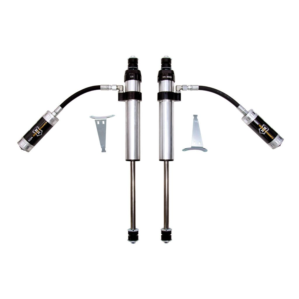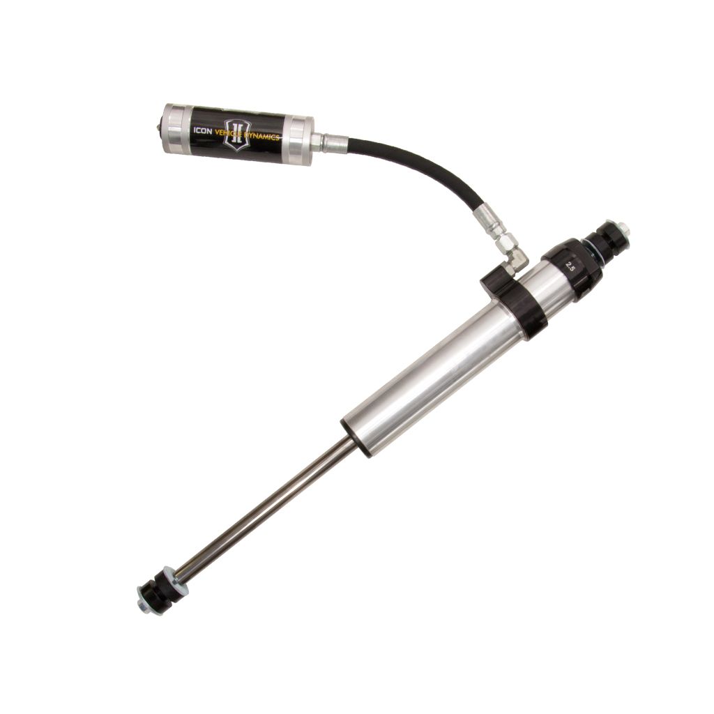 ICON Vehicle Specific (V.S.) 2.5 Aluminum Series shocks are designed and built to give your vehicle outstanding performance off-road and a smooth ride on the street. These shocks are configured specifically for each application in both length and damping tune. Like all ICON'S Shock Absorbers, V.S. 2.5 Aluminum Series shocks are 100% rebuildable and 100% revalveable. For piggyback and specific remote reservoir applications, ICON'S unique use of a 6061 billet aluminum manifold a few inches below the top cap of the shock creates an internal Bump Zone that when used creates an additional 20% of damping force. This additional force helps prevent harsh bottom outs and controls the suspension when compressing at high velocity. If you are looking for a more user defined tune, consider looking into the Compression Damping Control Valve (CDCV) shocks.