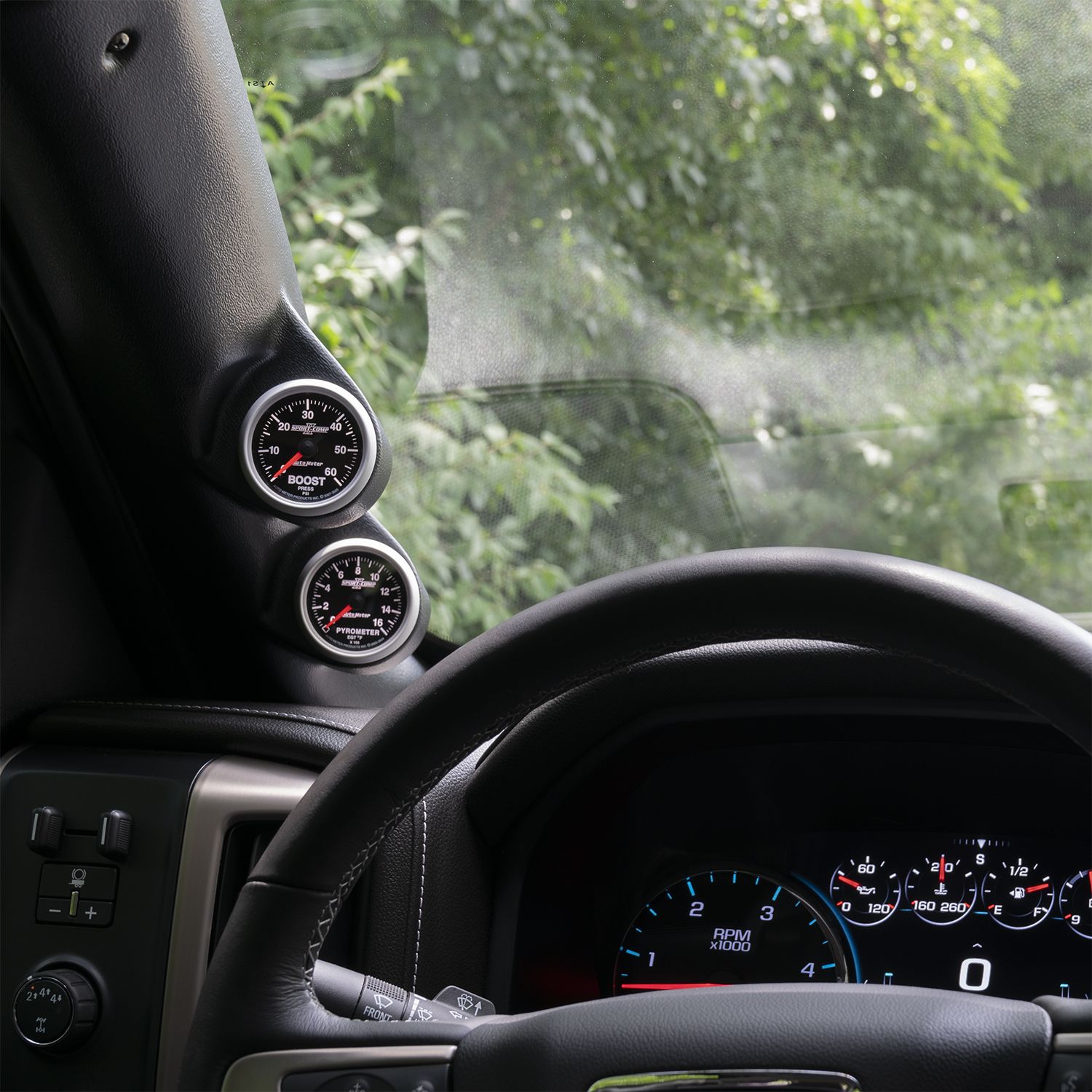 Full dual 2-1/16" gauge pillar, black. No handle.