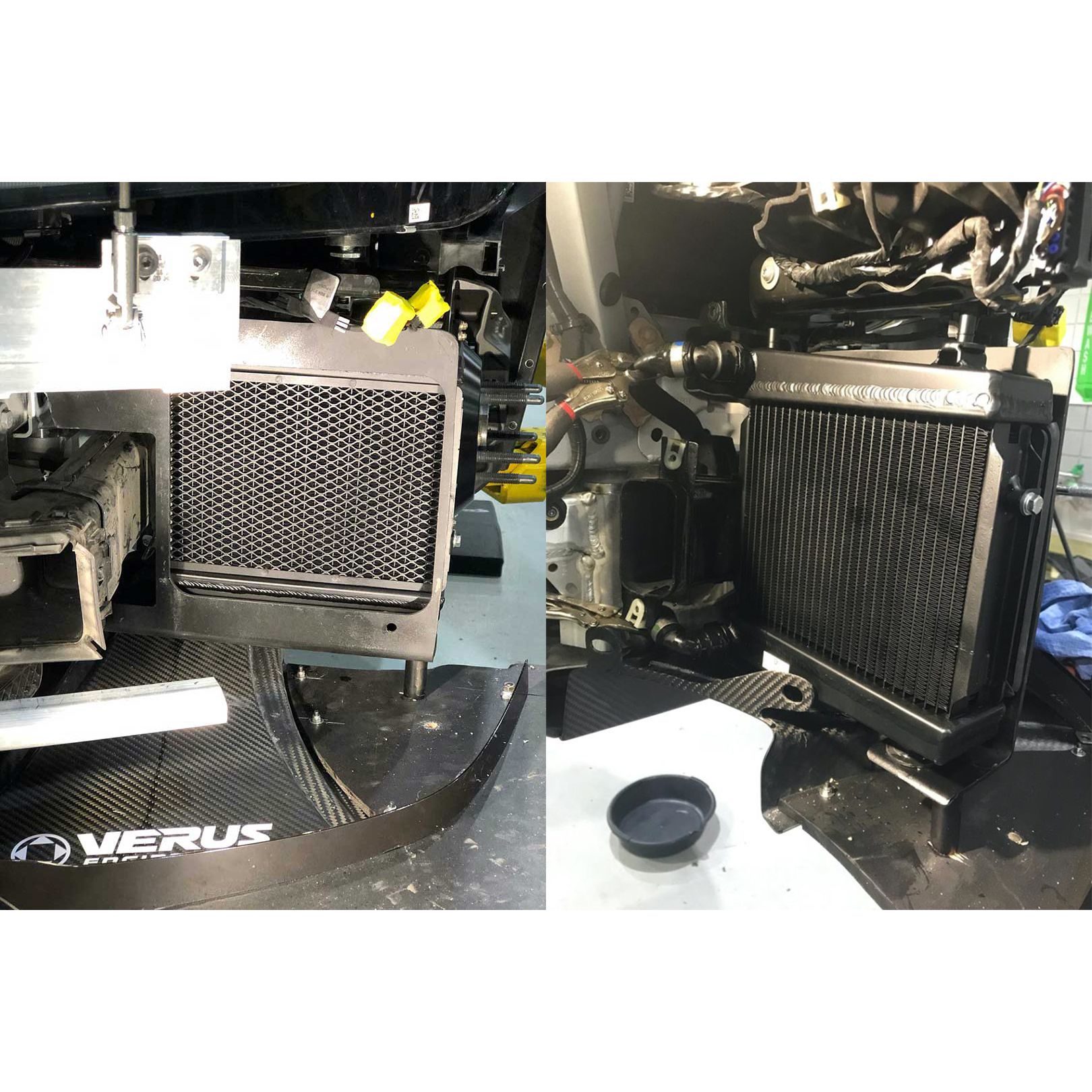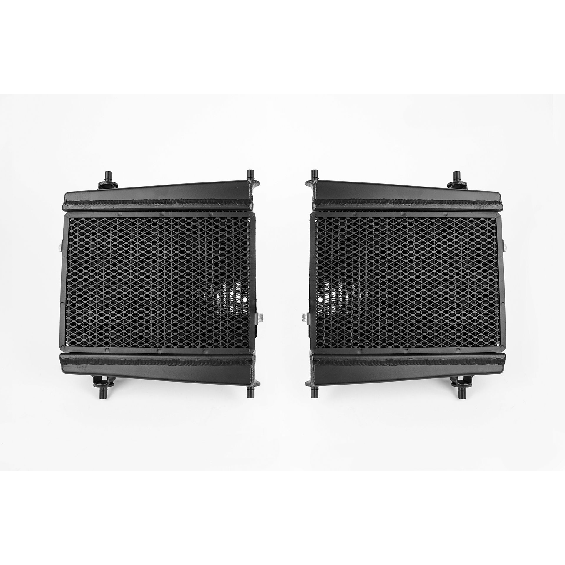 Don't be fooled by other high-performance aftermarket options that utilize the OEM plastic rock guard. The OEM rock guard's vertical channel design is specifically designed to only work with the tube spacing found on the OEM core. When the OEM rock guard is installed on an aftermarket radiator, it actually blocks a significant amount of surface area. Obviously this is detrimental to the intended performance. During CSF's own R&D phase, CSF analyzed both the OEM and other aftermarket offerings and decided to go the extra mile. CSF redesigned the included rock guard to allow maximum flow to the radiator core, while still offering ample protection from small rocks and road debris – all proven on CSF's in-house wind tunnel. CSF's new Auxiliary Radiator fits both the left and right side of the vehicle as a drop-in fit. Thus requiring no modifications to install. Each features CNC machined mounting brackets and OEM style "Quick Connect" inlet/outlet connections. This makes for a true plug-and-play installation that does not interfere with aftermarket performance aero modifications.