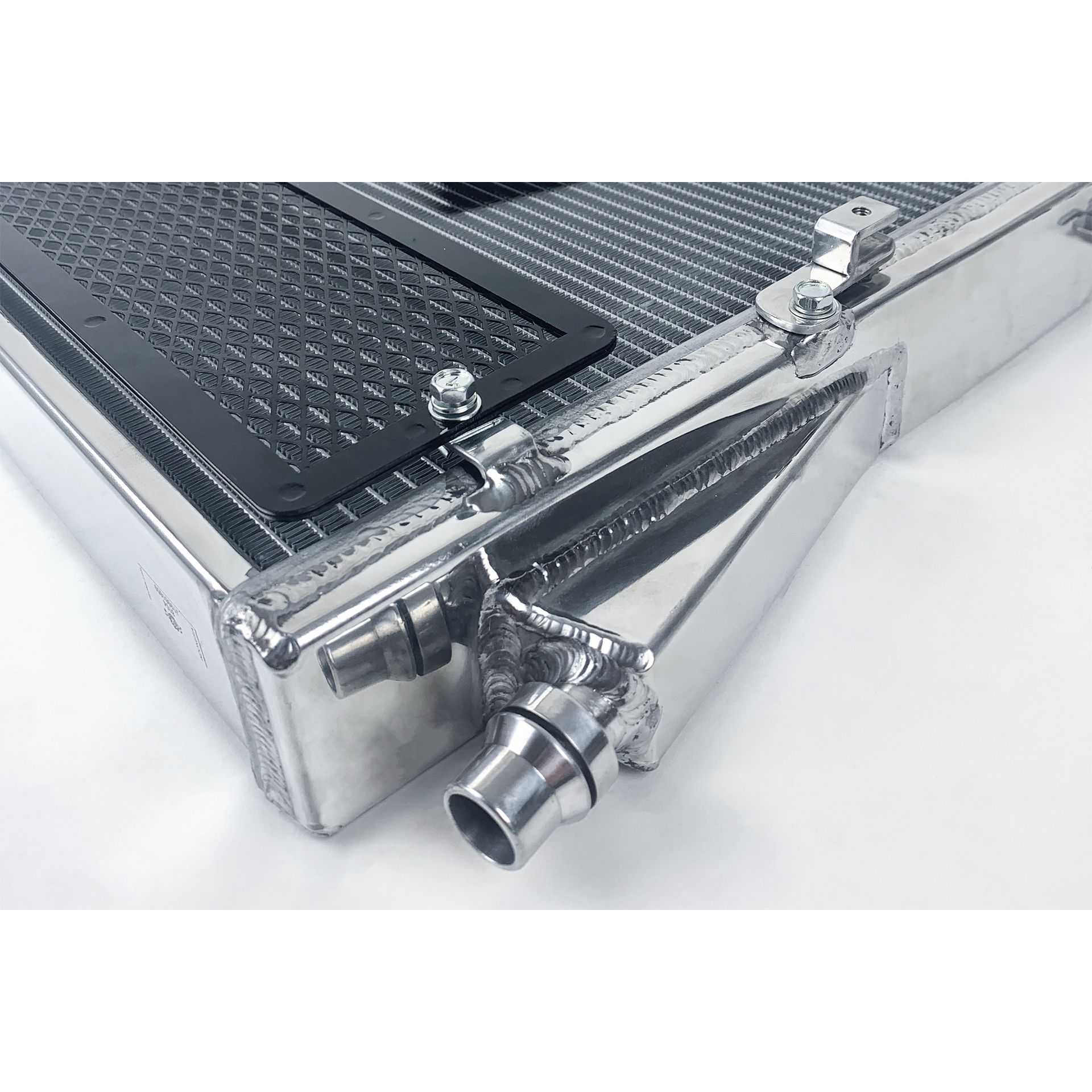 CSF's B58 high-performance heat exchanger will be a critical component to keeping your Supra/BMW's charge air cool, and out of limp mode. The upgraded heat exchanger is especially important when upgrading turbos and/or running performance tuning software. The original 2nd Gen B58 heat exchanger is a 1-row unit that is 25mm thick. In comparison, CSF has used its industry-exclusive world's largest 2-row core (68mm) with CSF's B-Tube technology. A unique tank design allows the larger CSF core to still fit into the OEM cooling system housing. The CSF improved design, includes billet transmission cooler mounts, and metal rock guard with improved airflow characteristics. CSF is the only company to include a rock guard and incorporate OEM transmission cooler mounting points for a true plug-and-play "drop-in" fit.