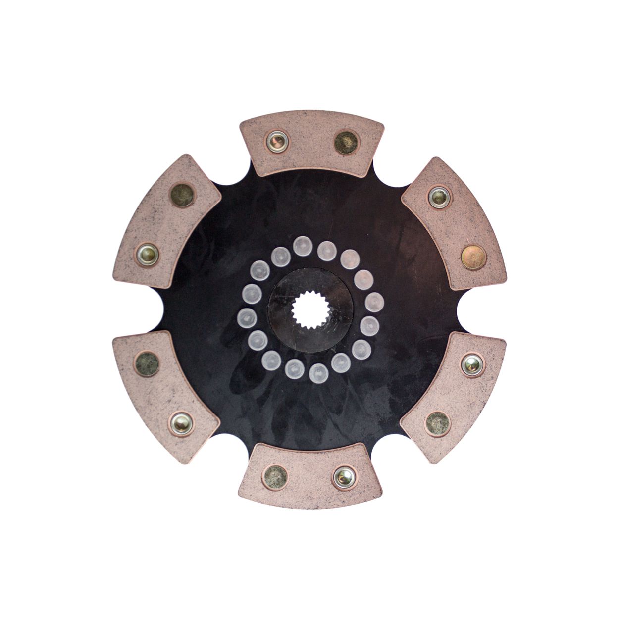6214014 is a 6-pad rigid race disc made with high quality ceramic friction materials. The disc engagement is harsher, but shifting is faster. The race disc features top grade rivets to securely fasten the part together. The rivet design and materials are carefully selected for maximum strength. The 6-pad rigid race disc is recommended for larger clutch sizes to absorb more heat and for smoother engagement.