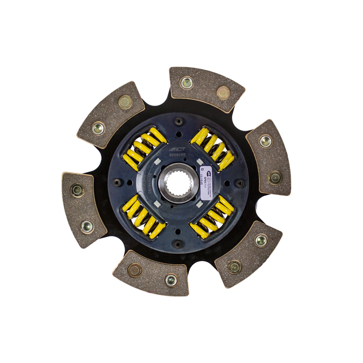 6228205 is a 6-pad spring-centered race discs made with high quality ceramic friction materials. The engagement is harsher, but shifting is faster. The heavy duty torsional dampening springs are stronger, in most cases, than standard springs and are provided in the best sizes and spring rates to suit the application. The 6-pad, spring-centered disc is recommended for larger clutch sizes to absorb more heat and for smoother engagement.