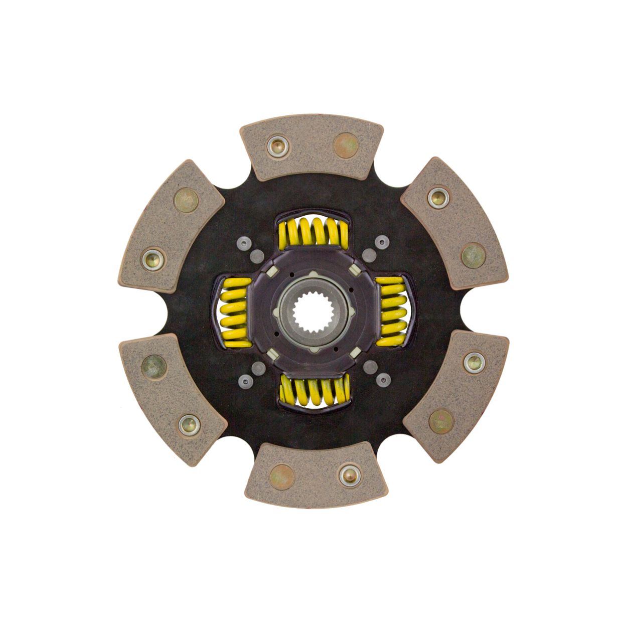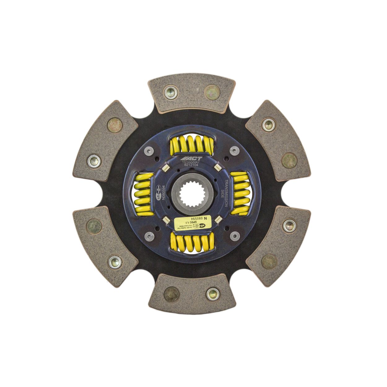 6212104 is a 6-pad spring-centered race discs made with high quality ceramic friction materials. The engagement is harsher, but shifting is faster. The heavy duty torsional dampening springs are stronger, in most cases, than standard springs and are provided in the best sizes and spring rates to suit the application. The 6-pad, spring-centered disc is recommended for larger clutch sizes to absorb more heat and for smoother engagement.