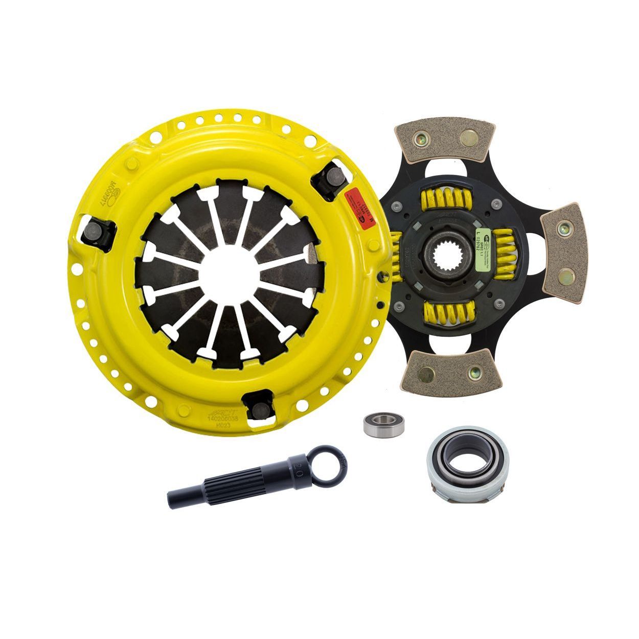 HW4-HDG4 kit features ACT's most popular Heavy Duty pressure plate. ACT Heavy Duty pressure plates use exclusive diaphragm design to increase clamp load, reduce deflection and maximize clutch life. All diaphragms endure a four-stage, heat-treating process for unparalleled performance. ACT pressure plates have precision cover stampings to provide rigidity and consistency. ACT's 4-pad spring-centered race disc features a spring-center to properly damp torsional vibrations for quieter operation and resist failure even under harsh conditions. ACT spring retainers utilize wraparound spring windows and thicker retainer stampings to provide spring support, reduce stress concentrations, and increase strength and reliability. With the 4-pad spring-centered race disc, engagement is harsher, but shifting is faster. ACT's 4-pad spring-centered race disc is well-suited for smaller disc sizes in smaller engines.