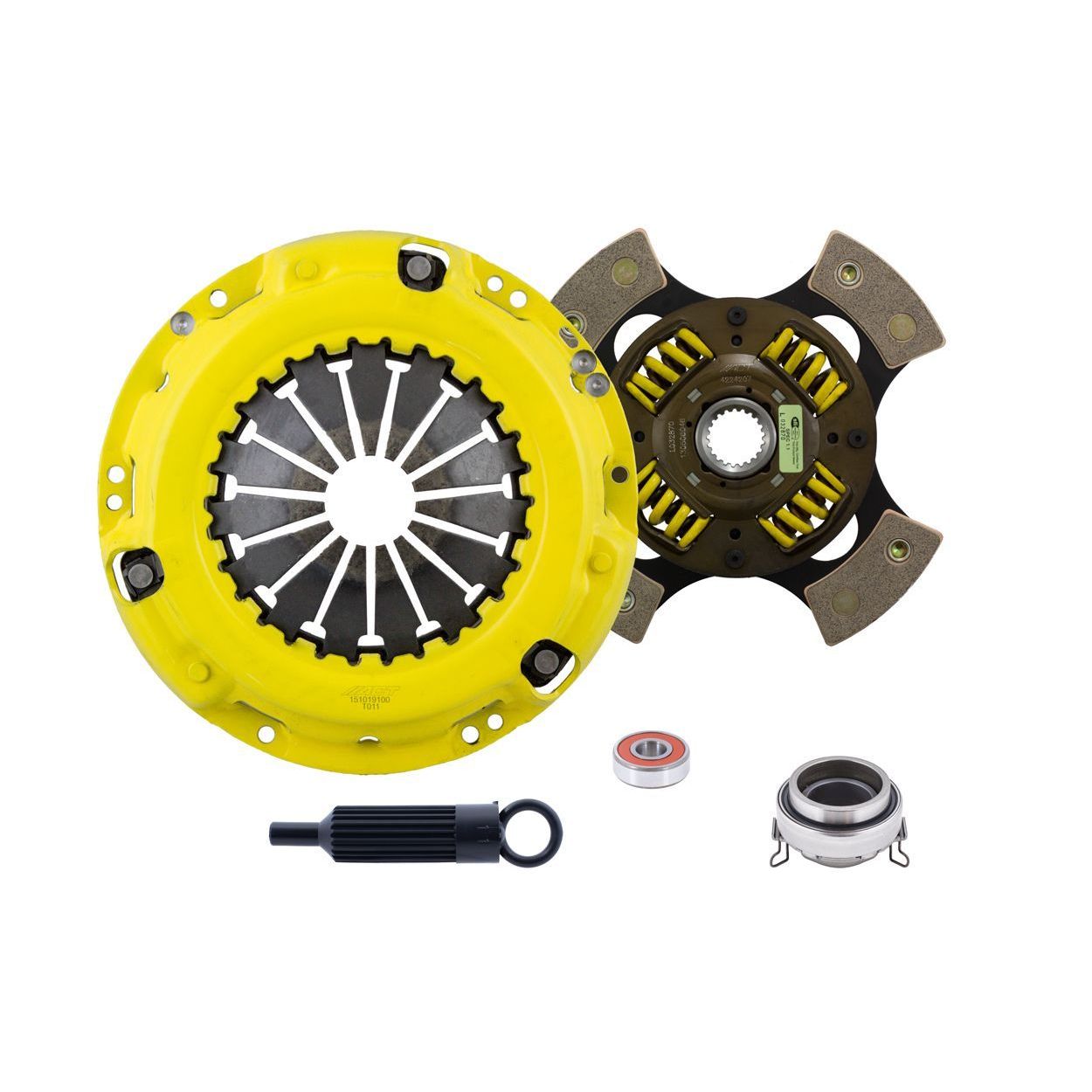 TV1-HDG4 kit features ACT's most popular Heavy Duty pressure plate. ACT Heavy Duty pressure plates use exclusive diaphragm design to increase clamp load, reduce deflection and maximize clutch life. All diaphragms endure a four-stage, heat-treating process for unparalleled performance. ACT pressure plates have precision cover stampings to provide rigidity and consistency. ACT's 4-pad spring-centered race disc features a spring-center to properly damp torsional vibrations for quieter operation and resist failure even under harsh conditions. ACT spring retainers utilize wraparound spring windows and thicker retainer stampings to provide spring support, reduce stress concentrations, and increase strength and reliability. With the 4-pad spring-centered race disc, engagement is harsher, but shifting is faster. ACT's 4-pad spring-centered race disc is well-suited for smaller disc sizes in smaller engines.