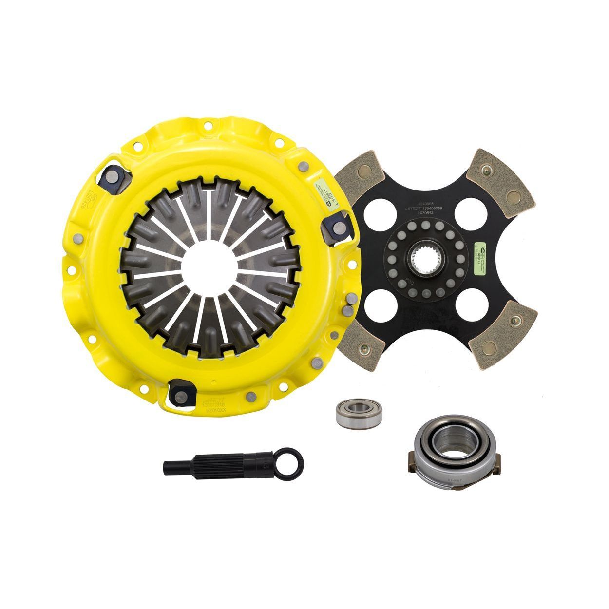 Z64-XXR4 kit features a MaXX pressure plate for the serious enthusiast. ACT MaXX pressure plates use exclusive diaphragm design to increase clamp load, reduce deflection and maximize clutch life. All diaphragms endure a four-stage, heat-treating process for unparalleled performance. ACT pressure plates have precision cover stampings to provide rigidity and consistency. ACT's 4-pad rigid race discs are made with high quality, ceramic friction materials. The chrome-moly hub is heat-treated for strength and durability. The lightweight, rigid design allows for quicker shifts and smooth, trouble-free service. With the 4-pad rigid race disc, engagement is harsher, but shifting is faster. The 4-pad rigid race disc is well-suited for the smaller disc sizes in smaller engines.