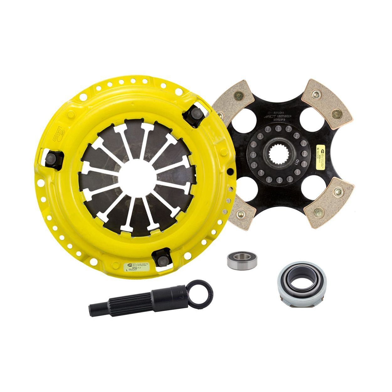 HC7-XXR4 kit features a MaXX pressure plate for the serious enthusiast. ACT MaXX pressure plates use exclusive diaphragm design to increase clamp load, reduce deflection and maximize clutch life. All diaphragms endure a four-stage, heat-treating process for unparalleled performance. ACT pressure plates have precision cover stampings to provide rigidity and consistency. ACT's 4-pad rigid race discs are made with high quality, ceramic friction materials. The chrome-moly hub is heat-treated for strength and durability. The lightweight, rigid design allows for quicker shifts and smooth, trouble-free service. With the 4-pad rigid race disc, engagement is harsher, but shifting is faster. The 4-pad rigid race disc is well-suited for the smaller disc sizes in smaller engines.