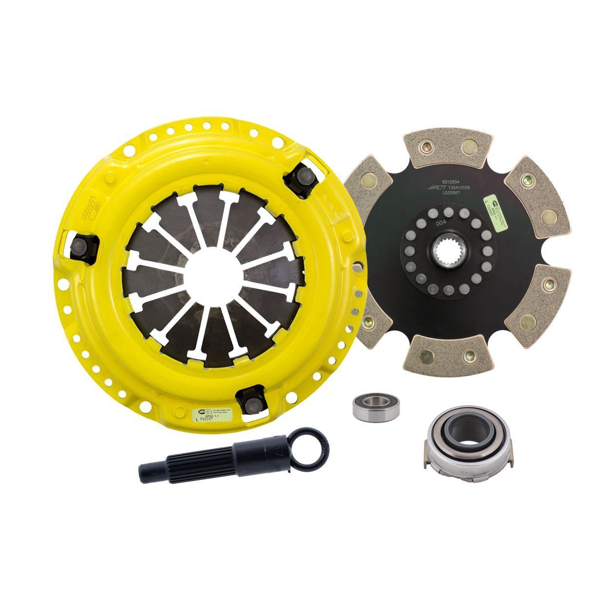 HC5-XXR6 features a MaXX pressure plate for the serious enthusiast. ACT MaXX pressure plates use exclusive diaphragm design to increase clamp load, reduce deflection and maximize clutch life. All diaphragms endure a four-stage, heat-treating process for unparalleled performance. ACT pressure plates have precision cover stampings to provide rigidity and consistency. ACT's 6-pad rigid race discs are made with high quality, ceramic friction materials. The chrome-moly hub is heat-treated for strength and durability. The lightweight, rigid design allows for quicker shifts and smooth, trouble-free service. With the 6-pad rigid race disc, engagement is harsher, but shifting is faster. The 6-pad rigid race disc is recommended for larger clutch sizes to absorb more heat.