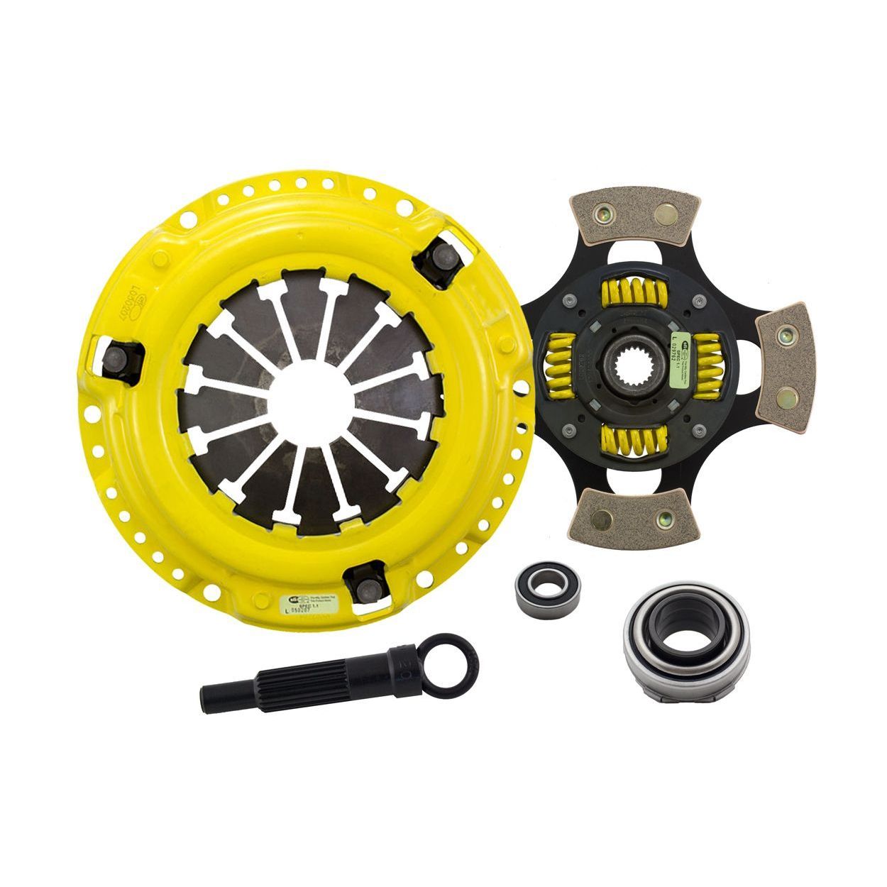 HC4-XXG4 kit features a MaXX pressure plate for the serious enthusiast. ACT MaXX pressure plates use exclusive diaphragm design to increase clamp load, reduce deflection and maximize clutch life. All diaphragms endure a four-stage, heat-treating process for unparalleled performance. ACT pressure plates have precision cover stampings to provide rigidity and consistency. ACT's 4-pad spring-centered race disc features a spring-center construction to properly damp torsional vibrations for quieter operation and resist failure even under harsh conditions. ACT spring retainers utilize wraparound spring windows and thicker retainer stampings to provide spring support, reduce stress concentrations, and increase strength and reliability. With the 4-pad spring-centered race disc, engagement is harsher, but shifting is faster. ACT's 4-pad spring-centered race disc is well-suited for smaller disc sizes in smaller engines.