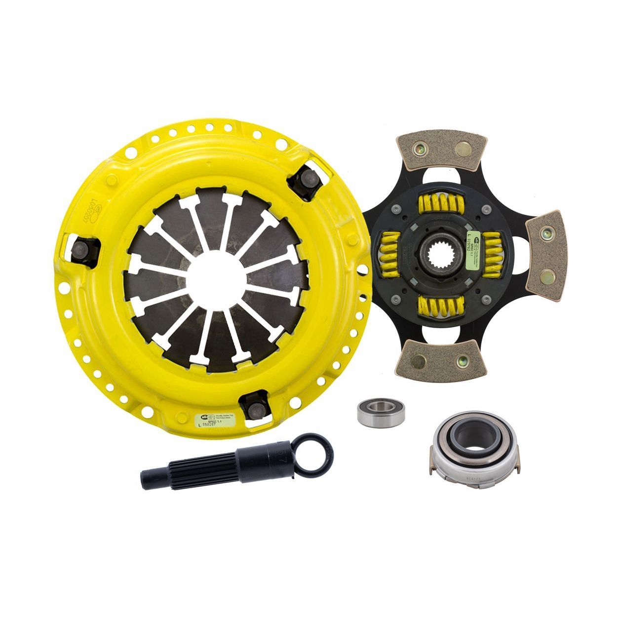 HC5-XXG4 kit features a MaXX pressure plate for the serious enthusiast. ACT MaXX pressure plates use exclusive diaphragm design to increase clamp load, reduce deflection and maximize clutch life. All diaphragms endure a four-stage, heat-treating process for unparalleled performance. ACT pressure plates have precision cover stampings to provide rigidity and consistency. ACT's 4-pad spring-centered race disc features a spring-center construction to properly damp torsional vibrations for quieter operation and resist failure even under harsh conditions. ACT spring retainers utilize wraparound spring windows and thicker retainer stampings to provide spring support, reduce stress concentrations, and increase strength and reliability. With the 4-pad spring-centered race disc, engagement is harsher, but shifting is faster. ACT's 4-pad spring-centered race disc is well-suited for smaller disc sizes in smaller engines.