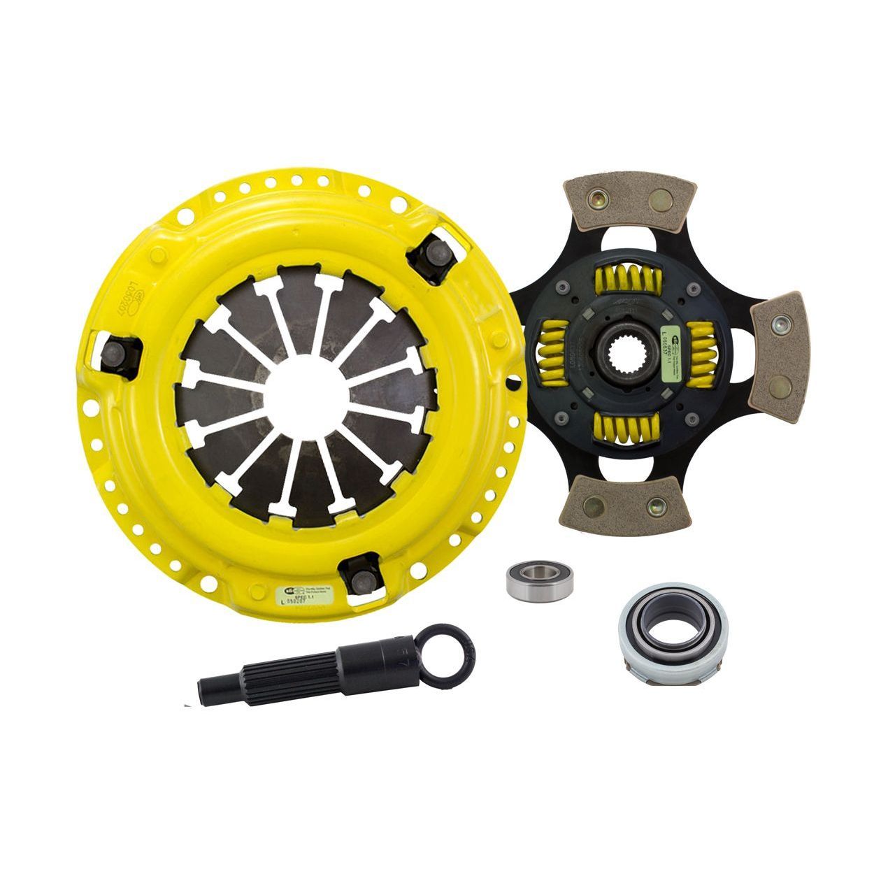 HC7-XXG4 kit features a MaXX pressure plate for the serious enthusiast. ACT MaXX pressure plates use exclusive diaphragm design to increase clamp load, reduce deflection and maximize clutch life. All diaphragms endure a four-stage, heat-treating process for unparalleled performance. ACT pressure plates have precision cover stampings to provide rigidity and consistency. ACT's 4-pad spring-centered race disc features a spring-center construction to properly damp torsional vibrations for quieter operation and resist failure even under harsh conditions. ACT spring retainers utilize wraparound spring windows and thicker retainer stampings to provide spring support, reduce stress concentrations, and increase strength and reliability. With the 4-pad spring-centered race disc, engagement is harsher, but shifting is faster. ACT's 4-pad spring-centered race disc is well-suited for smaller disc sizes in smaller engines.