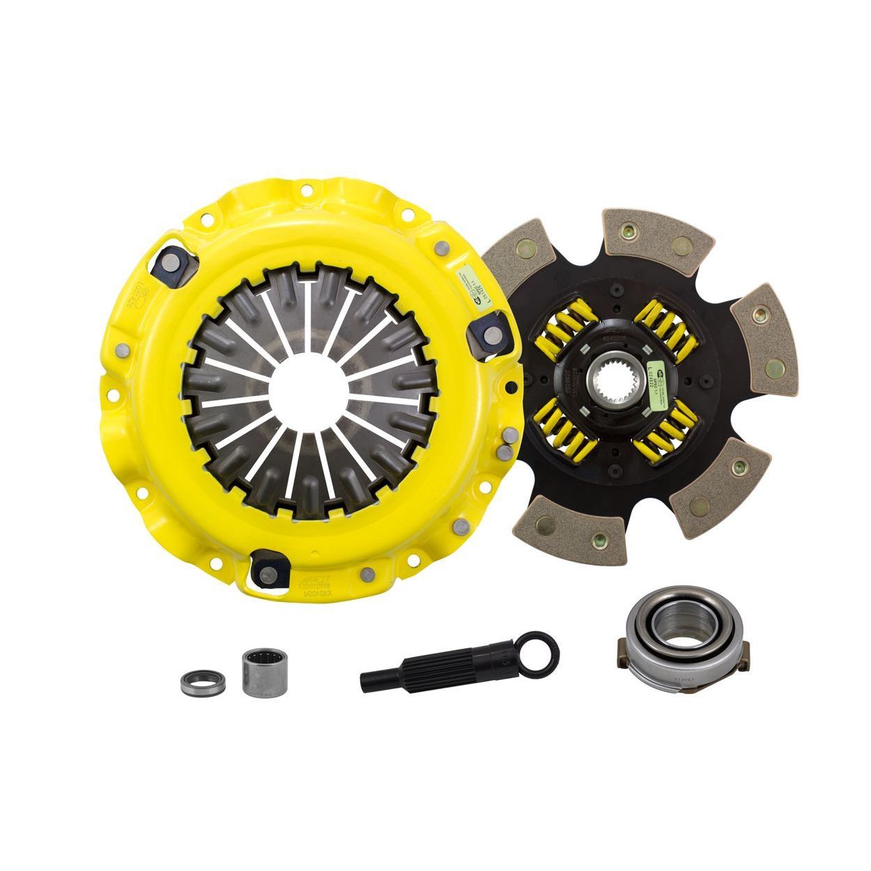 Z65-XXG6 kit features a MaXX pressure plate for the serious enthusiast. ACT MaXX pressure plates use exclusive diaphragm design to increase clamp load, reduce deflection and maximize clutch life. All diaphragms endure a four-stage, heat-treating process for unparalleled performance. ACT pressure plates have precision cover stampings to provide rigidity and consistency. ACT's 6-pad, spring-centered race disc features a spring-center construction to properly damp torsional vibrations and resist failure under harsh conditions. ACT spring retainers utilize wraparound spring windows and thicker retainer stampings to provide spring support, reduce stress concentrations, and increase strength and reliability. With the 6-pad, spring-centered race disc, engagement is harsher, but shifting is faster. The 6-pad, spring-centered disc is recommended for larger clutch sizes to absorb more heat.