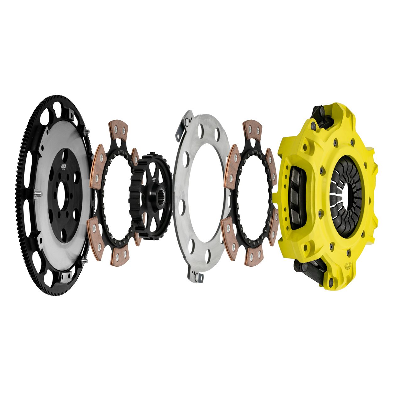 T3R-G13 Mod-Twin 10.5 XX Rigid Race Kit tackles aggressive launches and rapid shifting of high-powered machines by combining twice the ceramic friction surfaces with a no-nonsense solid Mono-Drive hub in a completely modular design. Each diaphragm spring endures an exclusive four-stage heat treating process to provide a consistent pedal feel requiring moderate effort. Puck-style Friction Plates with high quality ceramic friction materials deliver high friction coefficient, superior heat capacity, and long clutch life. These Friction Plates uniformly transfer torque to a Mono-Drive Chromoly hub, which is heat treated for strength and durability extending input shaft life with one continuous spline. The lightweight, rigid design allows for quicker shifts and trouble-free service. This kit includes a CNC-machined and dynamically balanced flywheel, pressure plate cover, diaphragm spring, face, puck-style ceramic friction plates, rigid Mono-Drive hub, floater, alignment tool and pilot bearing (where applicable). Mod-Twin clutches are fully rebuildable, and replacement discs may be ordered separately.