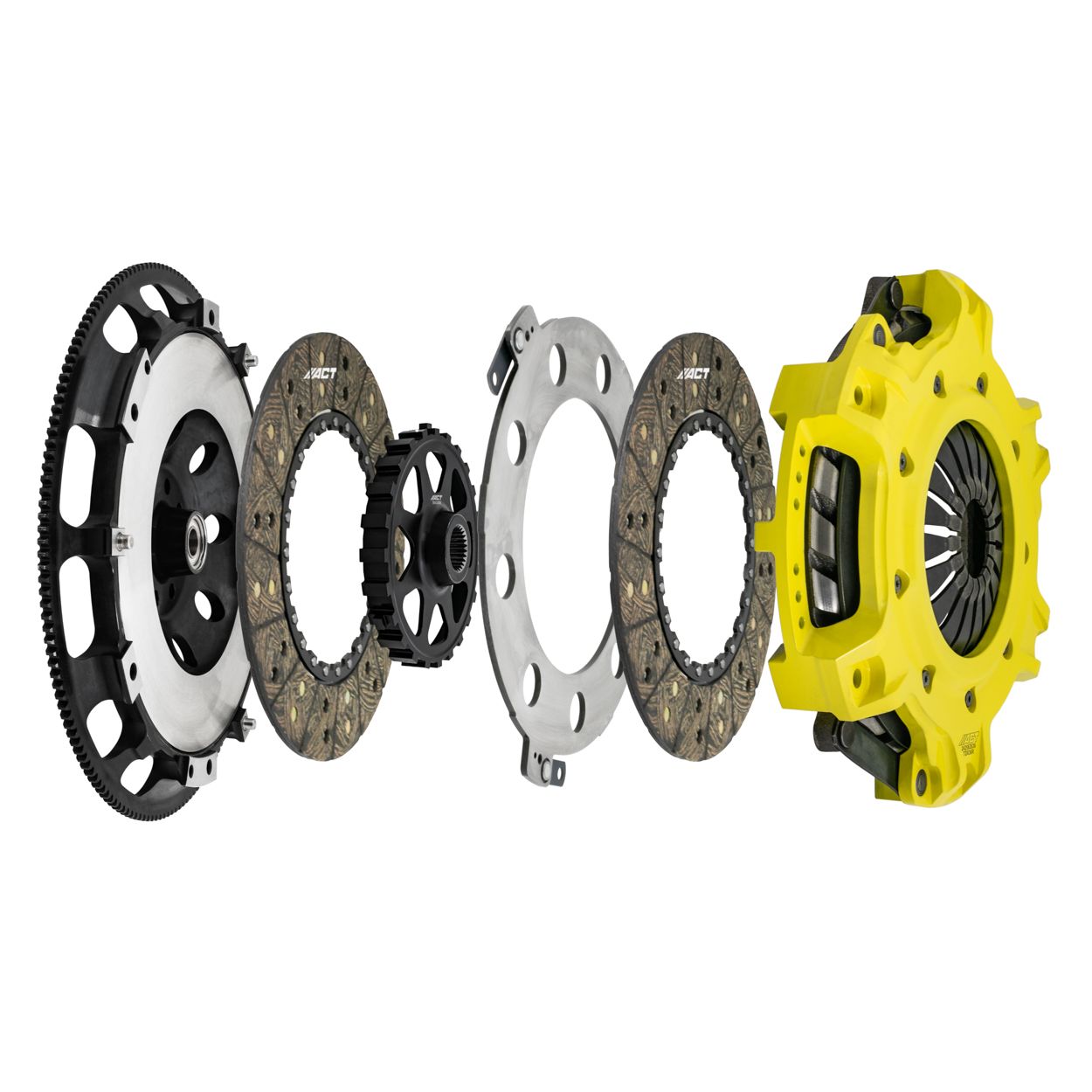 T3S-F12 Mod-Twin 10.5 XX Rigid Street Kit blends smooth but positive engagement with quick shifting for high-powered street machines by combining twice the organic friction surfaces with a no-nonsense solid Mono-Drive hub in a completely modular design. Each diaphragm spring endures an exclusive four-stage heat treating process to provide a consistent pedal feel requiring moderate effort. Steel-backed Friction Plates with high quality organic friction materials deliver stable friction coefficient, good heat capacity and long clutch life. These Friction Plates uniformly transfer torque to a Mono-Drive Chromoly hub, which is heat treated for strength and durability extending input shaft life with one continuous spline. The lightweight, rigid design allows for quicker shifts and trouble-free service. This kit includes a CNC-machined and dynamically balanced flywheel, pressure plate cover, diaphragm spring, face, puck-style ceramic friction plates, rigid Mono-Drive hub, floater, alignment tool and pilot bearing (if needed). Mod-Twin clutches are fully rebuildable, and replacement discs may be ordered separately.
