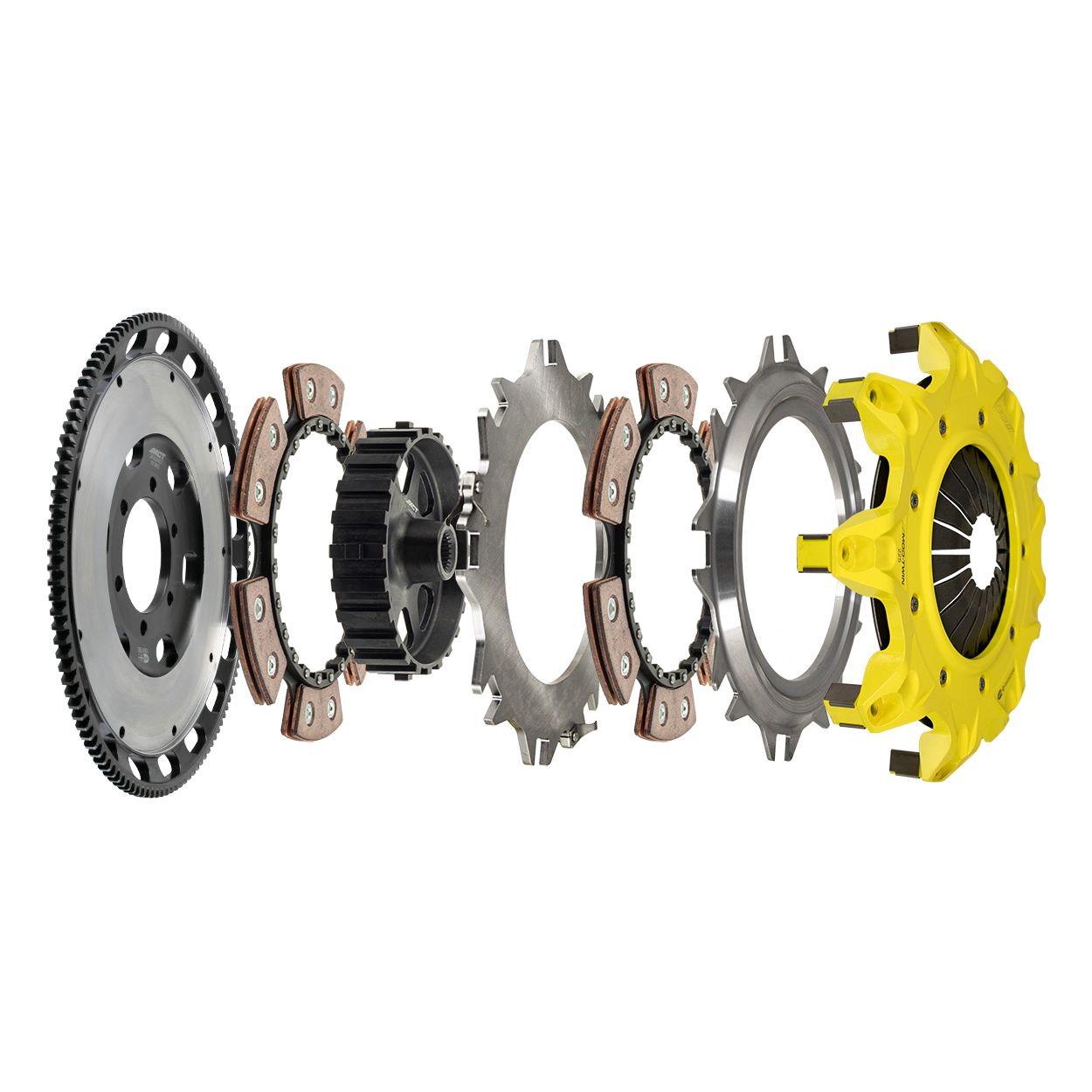 T1R-MZ02 Mod-Twin 225 HD Rigid Race Kit tackles aggressive launches and rapid shifting of high powered AWD’s by combining twice the ceramic friction surfaces with a no-nonsense solid Mono-Drive hub in a completely modular design. Each diaphragm spring endures an exclusive four-stage heat treating process providing a consistent light pedal feel. Puck-style Friction Plates with high quality ceramic friction materials deliver high friction coefficient, superior heat capacity, and long clutch life. These Friction Plates uniformly transfer torque to a Mono-Drive chrome-moly hub which is heat treated for strength and durability extending input shaft life with one continuous spline. The lightweight, rigid design allows for quicker shifts and trouble-free service. This kit includes a CNC-machined and dynamically balanced flywheel, pressure plate cover, diaphragm spring, face, puck-style ceramic friction plates, rigid Mono-Drive hub, floater, patented Monoloc Collar, release bearing, alignment tool and pilot bearing (if needed). Mod-Twin clutches are fully rebuildable and most components can be ordered separately.