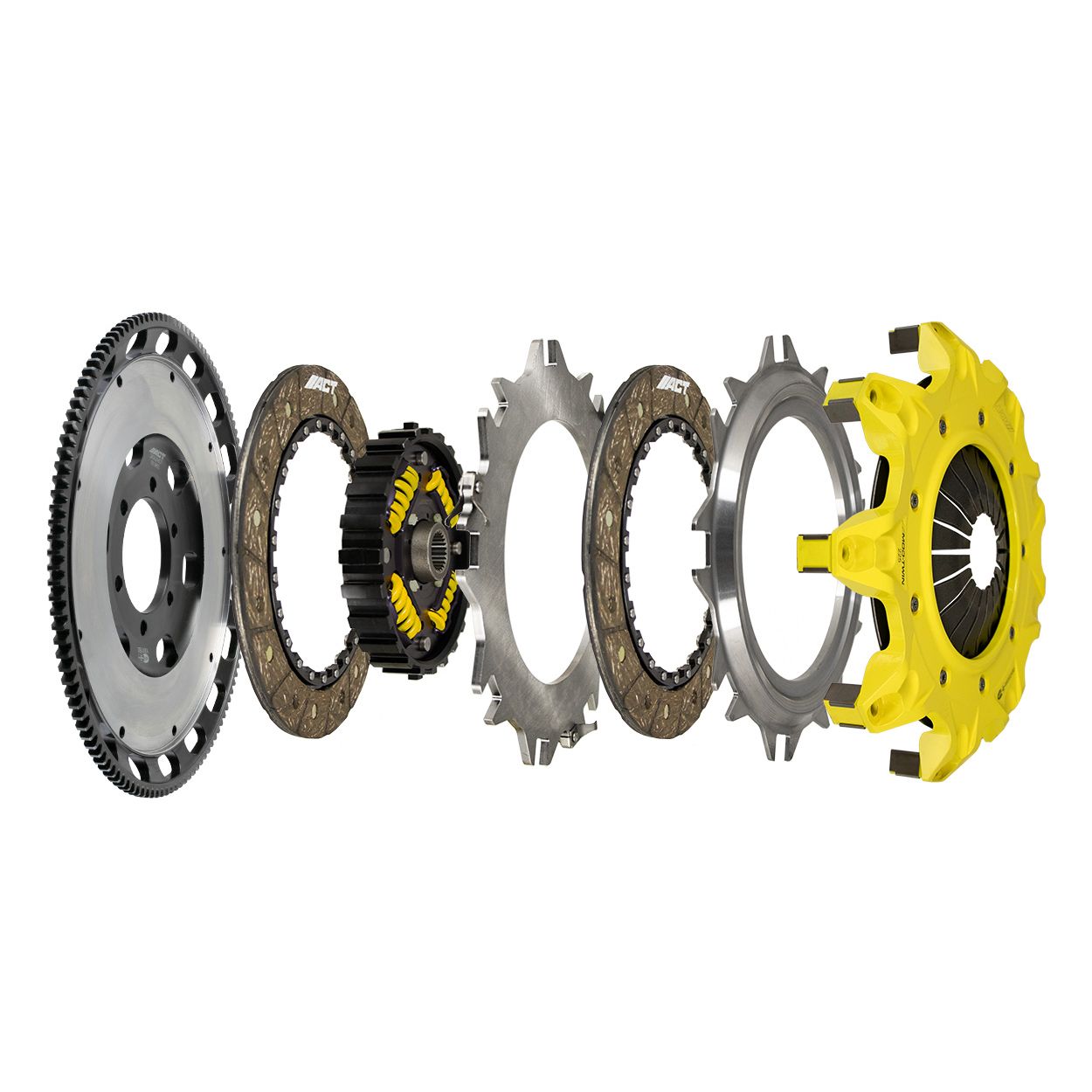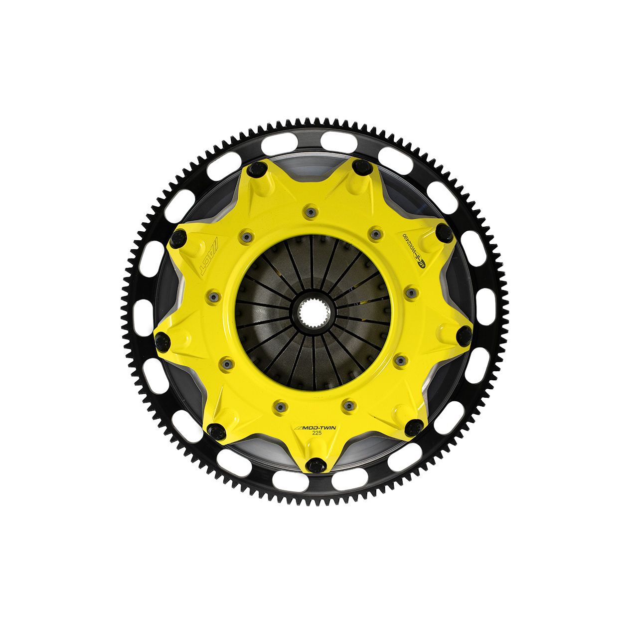 T2RS-MZ02 Mod-Twin 225 XT Sprung Race Kit performs aggressive launches and smoother shifting in high powered AWD’s by combining twice the ceramic friction surfaces with an ultra-durable Mono-Drive sprung hub assembly in a completely modular design. Each diaphragm spring endures an exclusive four-stage heat treating process providing a consistent light pedal feel. Puck-style Friction Plates with high quality ceramic friction materials deliver high friction coefficient, superior heat capacity, and long clutch life. These Friction Plates uniformly transfer torque to a Mono-Drive sprung hub assembly which extends input shaft life and reduces driveline shock from torsional vibration. This kit includes a CNC-machined and dynamically balanced flywheel, pressure plate cover, diaphragm spring, face, puck-style ceramic friction plates, sprung Mono-Drive hub assembly, floater, patented Monoloc Collar, release bearing, alignment tool and pilot bearing (if needed). Mod-Twin clutches are fully rebuildable and most components can be ordered separately.