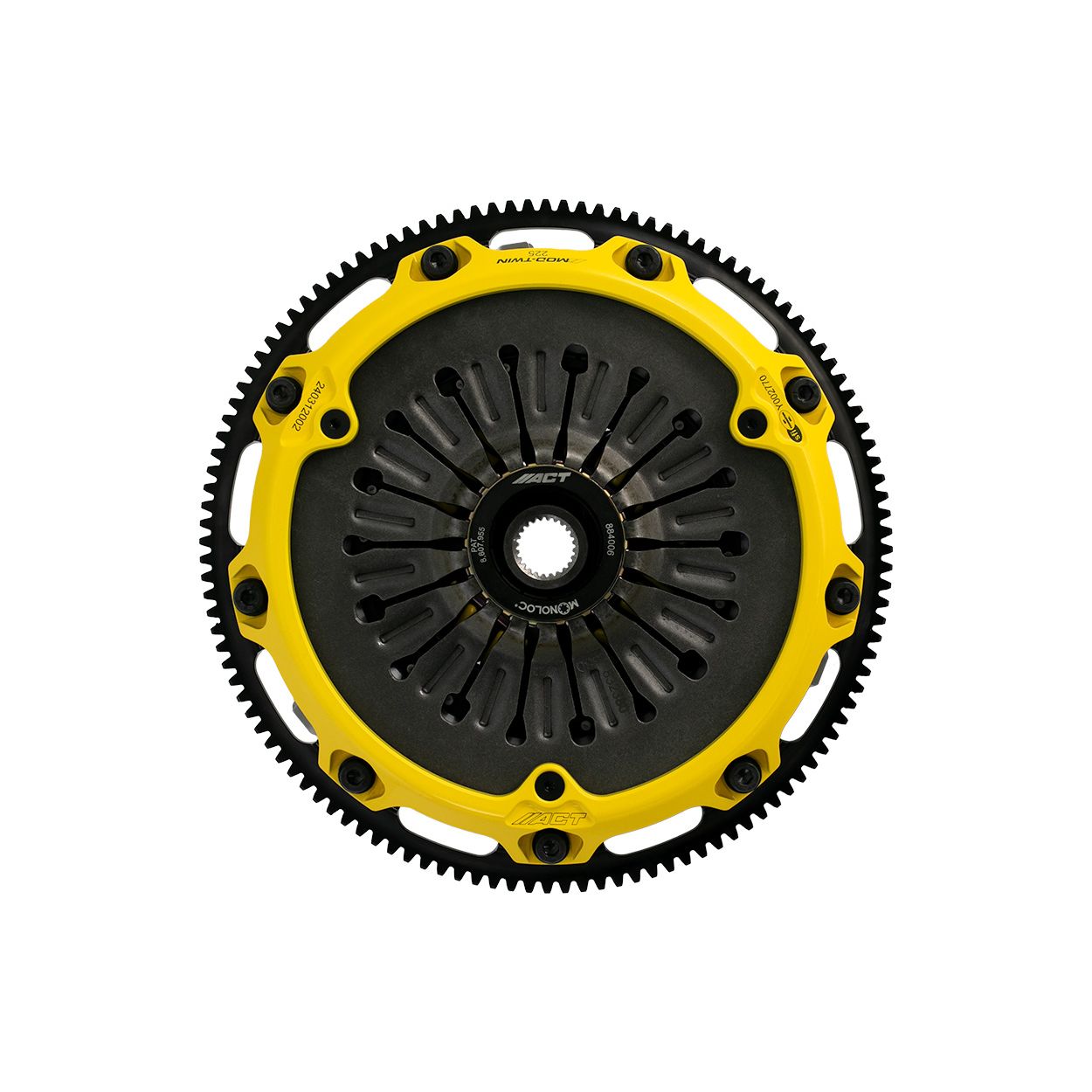 T3R-N03 Mod-Twin 225 XX Rigid Race Kit tackles aggressive launches and rapid shifting of high powered AWD’s by combining twice the ceramic friction surfaces with a no-nonsense solid Mono-Drive hub in a completely modular design. Each diaphragm spring endures an exclusive four-stage heat treating process providing a consistent pedal feel requiring moderate effort. Puck-style Friction Plates with high quality ceramic friction materials deliver high friction coefficient, superior heat capacity, and long clutch life. These Friction Plates uniformly transfer torque to a Mono-Drive chrome-moly hub which is heat treated for strength and durability extending input shaft life with one continuous spline. The lightweight, rigid design allows for quicker shifts and trouble-free service. This kit includes a CNC-machined and dynamically balanced flywheel, pressure plate cover, diaphragm spring, face, puck-style ceramic friction plates, rigid Mono-Drive hub, floater, patented Monoloc Collar, release bearing, alignment tool and pilot bearing (if needed). Mod-Twin clutches are fully rebuildable and most components can be ordered separately.